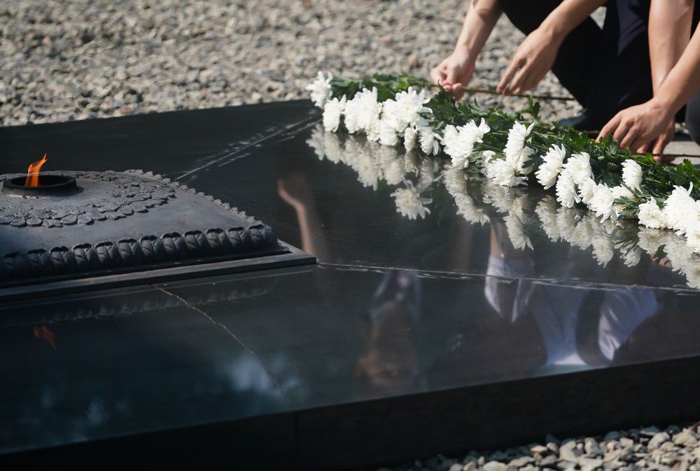 2019年8月15日,人們在侵華日軍南京大屠殺遇難同胞紀(jì)念館悼念遇難者。