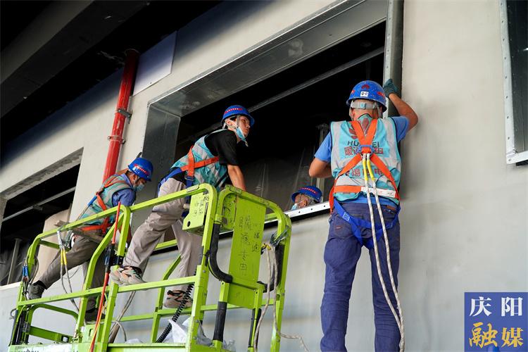 ▲工人們進行鋼結(jié)構(gòu)排風(fēng)口安裝。
