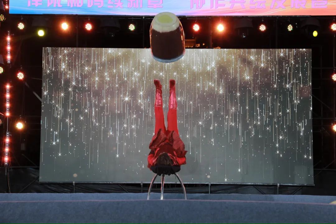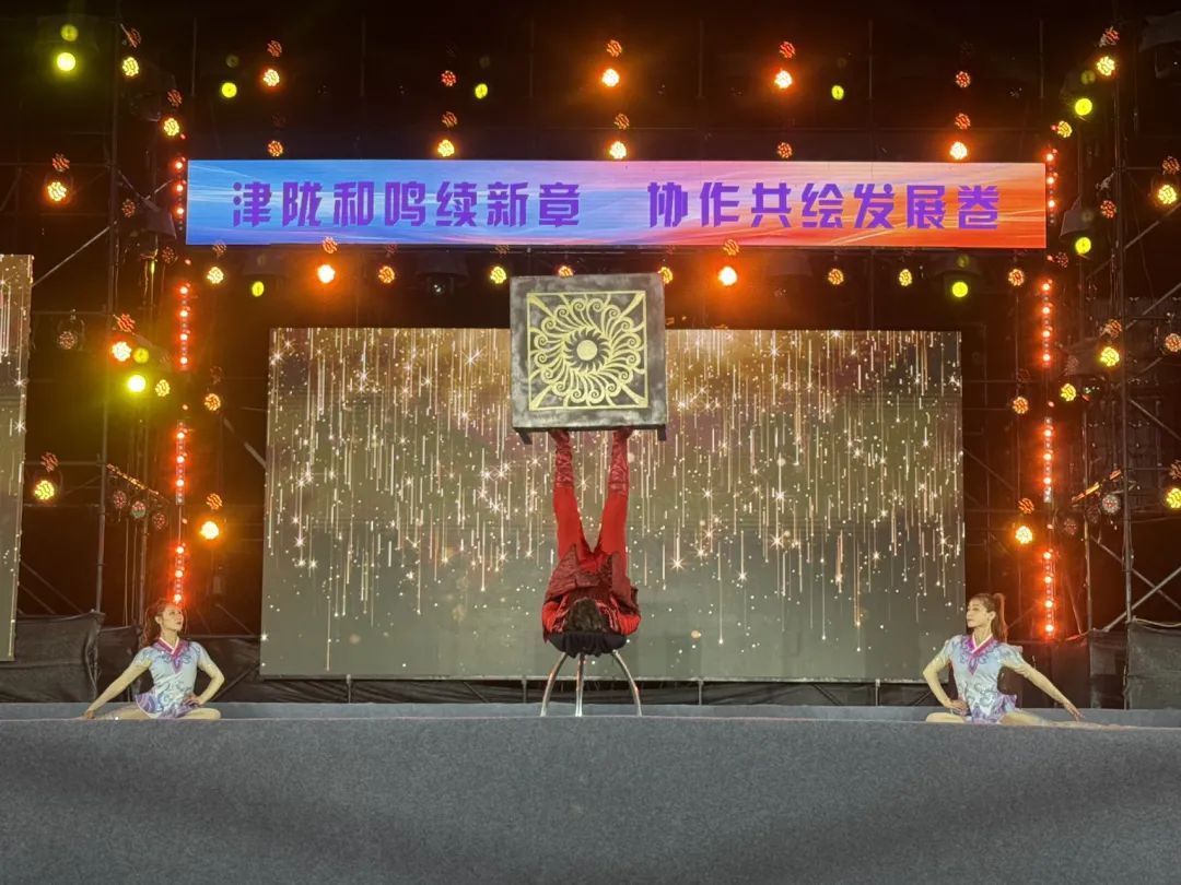 來自天津的藝術家們帶來了極具地域特色的精彩節(jié)目,成為當晚亮點。南開區(qū)文化館王錚鑫、郭明達的相聲《同仁堂》,以其獨特的津味兒幽默和扎實的表演功底,引得滿堂喝彩,讓慶城觀眾近距離感受到天津曲藝的魅力。天津市雜技團王娜表演的雜技《重蹬技》,技藝高超、驚險刺激,贏得陣陣驚呼與掌聲,充分展現(xiàn)了天津雜技藝術的精妙絕倫。壓軸登場的歌伴舞《津門故里等你來》,由南開區(qū)文化館演唱,慶城縣金鳳凰演藝公司伴舞,不僅用歌聲傳遞了天津人民的熱情邀約,更通過兩地演員的默契配合,生動詮釋了津隴文化的深度交融。