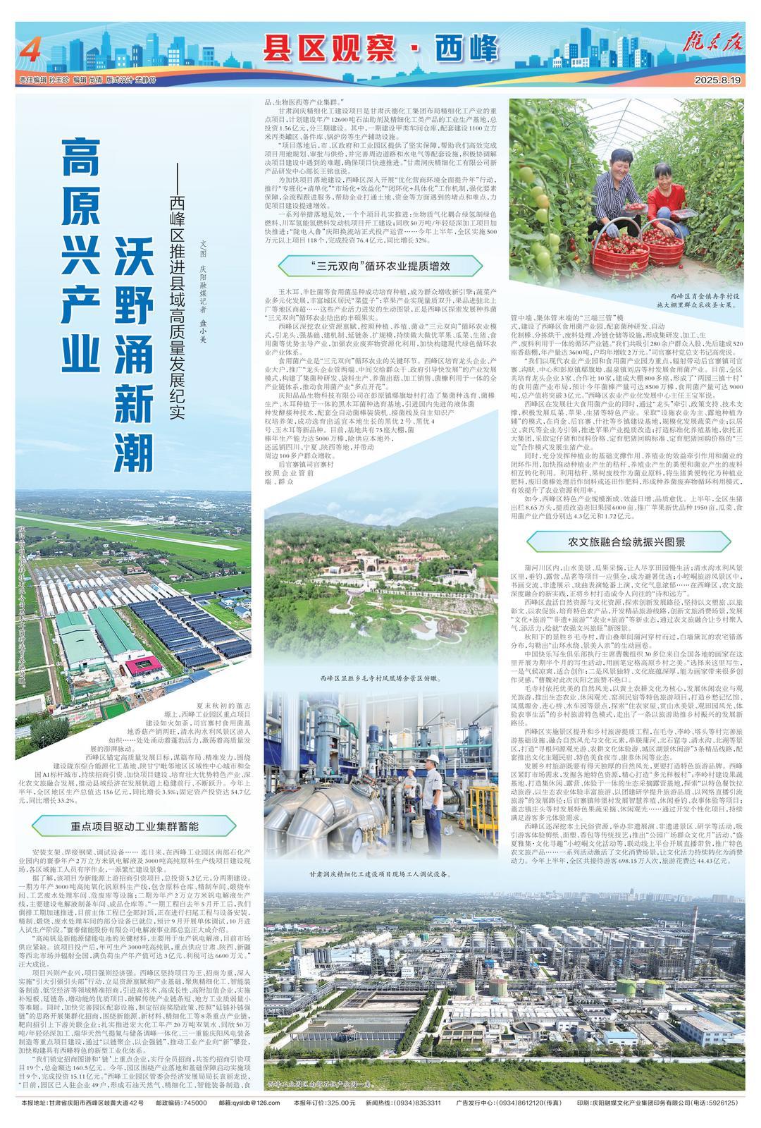 夏末秋初的董志塬上,西峰工業(yè)園區(qū)重點項目建設(shè)如火如荼,司官寨村食用菌基地香菇產(chǎn)銷兩旺,清水溝水利風(fēng)景區(qū)游人如織……處處涌動著蓬勃活力,激蕩著高質(zhì)量發(fā)展的澎湃脈動。