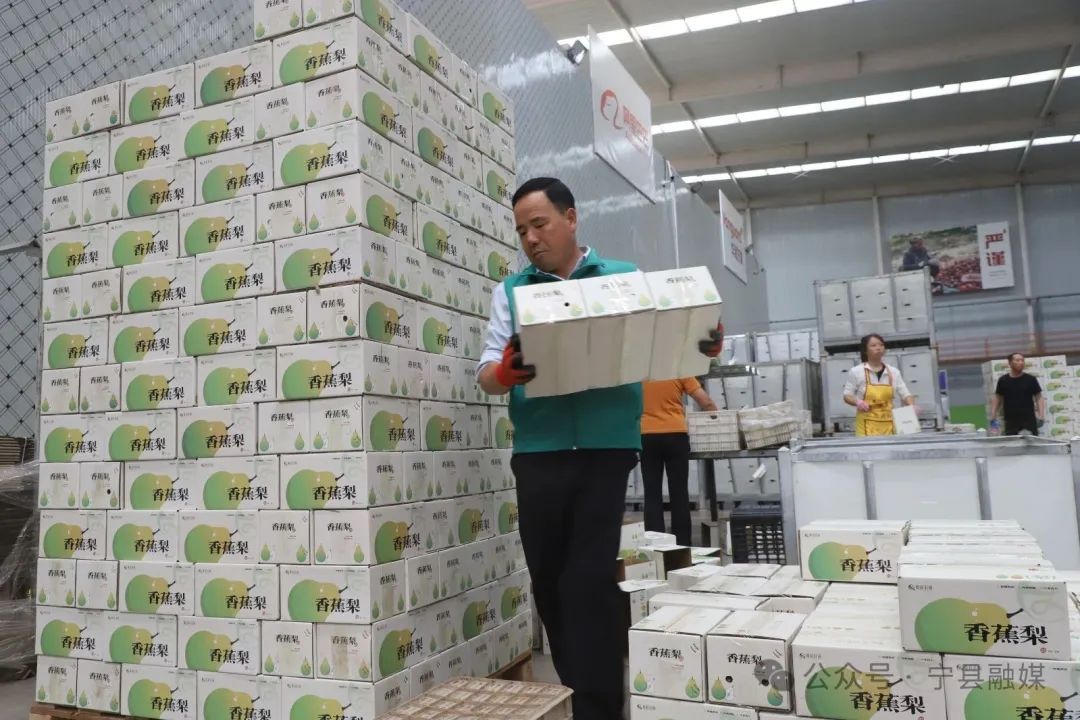 初秋時節(jié),寧縣新莊興慶果業(yè)農(nóng)民專業(yè)合作社的500多畝梨園迎來豐收季,合作社正組織人力忙著采摘、分揀、運輸,并通過電商銷售至全國各地。圖為8月19日采摘和裝箱現(xiàn)場。