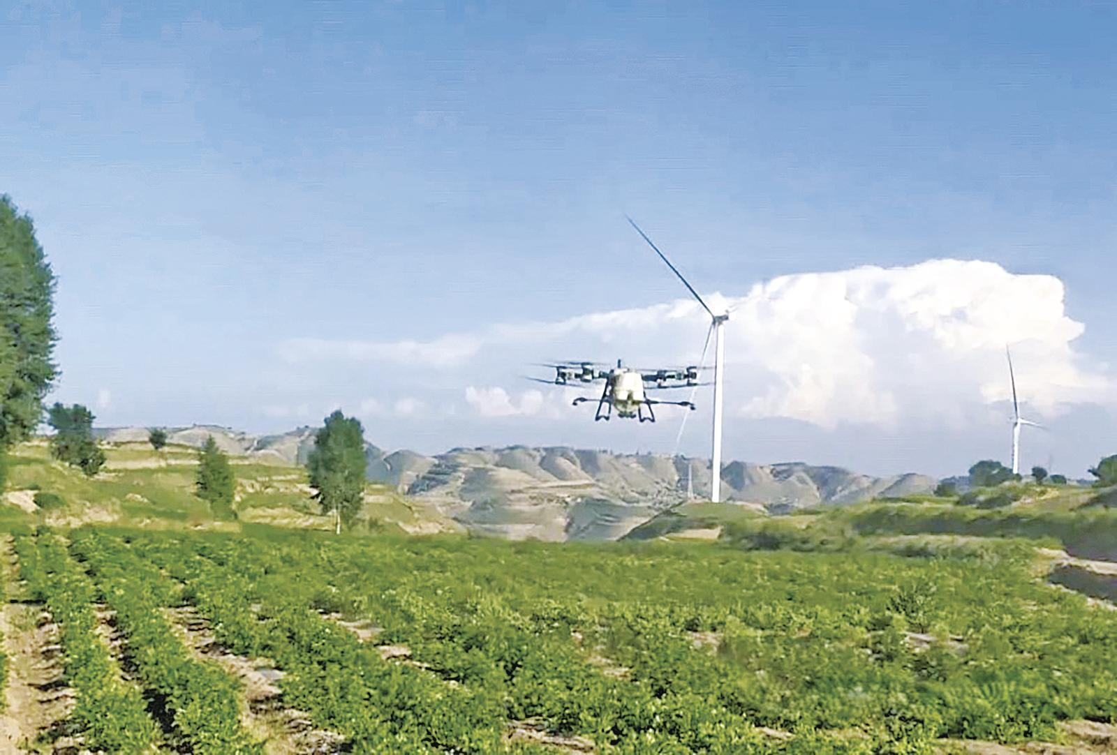 山城鄉(xiāng)八里鋪村1500畝馬鈴薯種植示范基地內(nèi),無人機(jī)在噴灑營(yíng)養(yǎng)液。