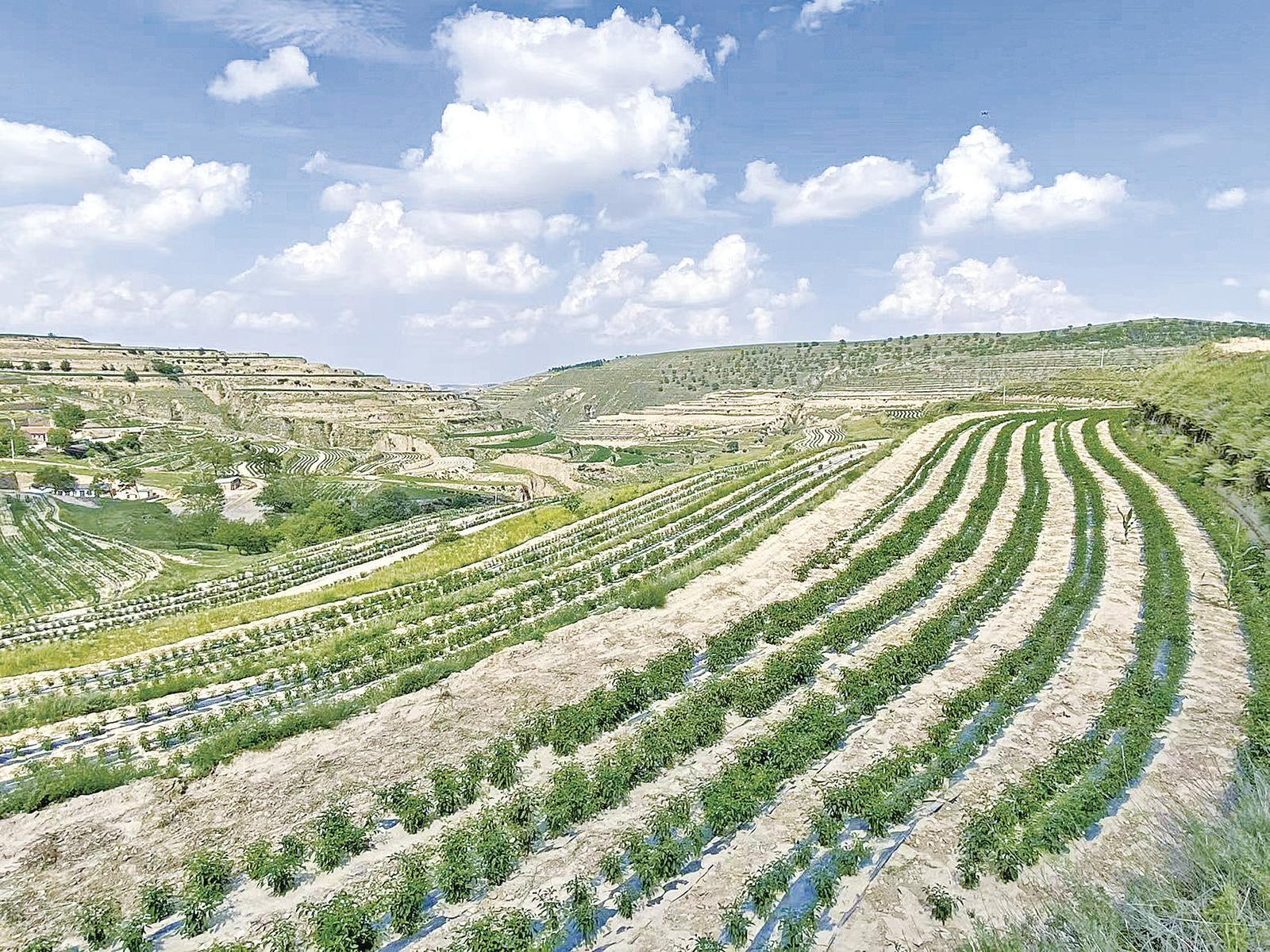 殷家城鄉(xiāng)敬岔村的辣椒梯田。 慶陽融媒記者 白勇濤 攝