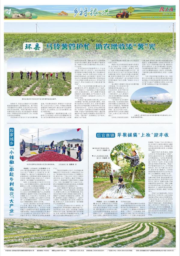 今年,環(huán)縣共種植馬鈴薯30萬畝。長(zhǎng)勢(shì)喜人的馬鈴薯也由傳統(tǒng)的糧食作物變成環(huán)縣種植業(yè)中經(jīng)濟(jì)效益顯著的經(jīng)濟(jì)作物,讓群眾“家門口就業(yè)”從愿景變?yōu)楝F(xiàn)實(shí),也讓豐收的“薯”光映照出鄉(xiāng)村振興的幸福底色。