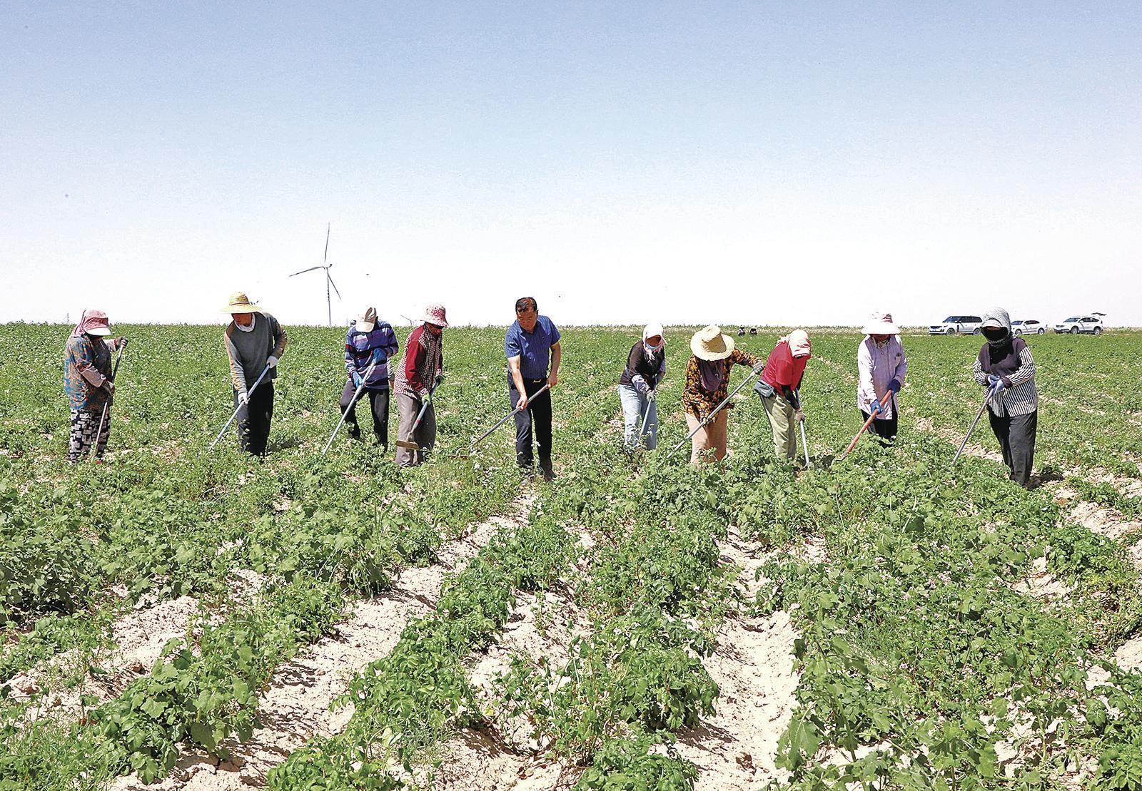 村民在南湫鄉(xiāng)代家洼村千畝馬鈴薯種植基地鋤草。
