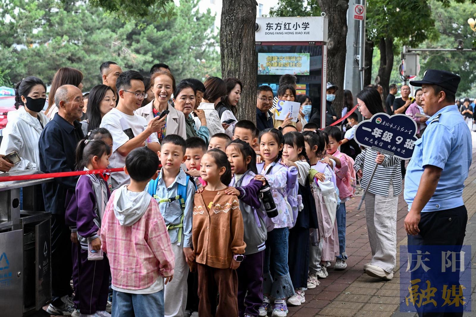 慶陽市東方紅小學(xué)一年級新生有序放學(xué)。