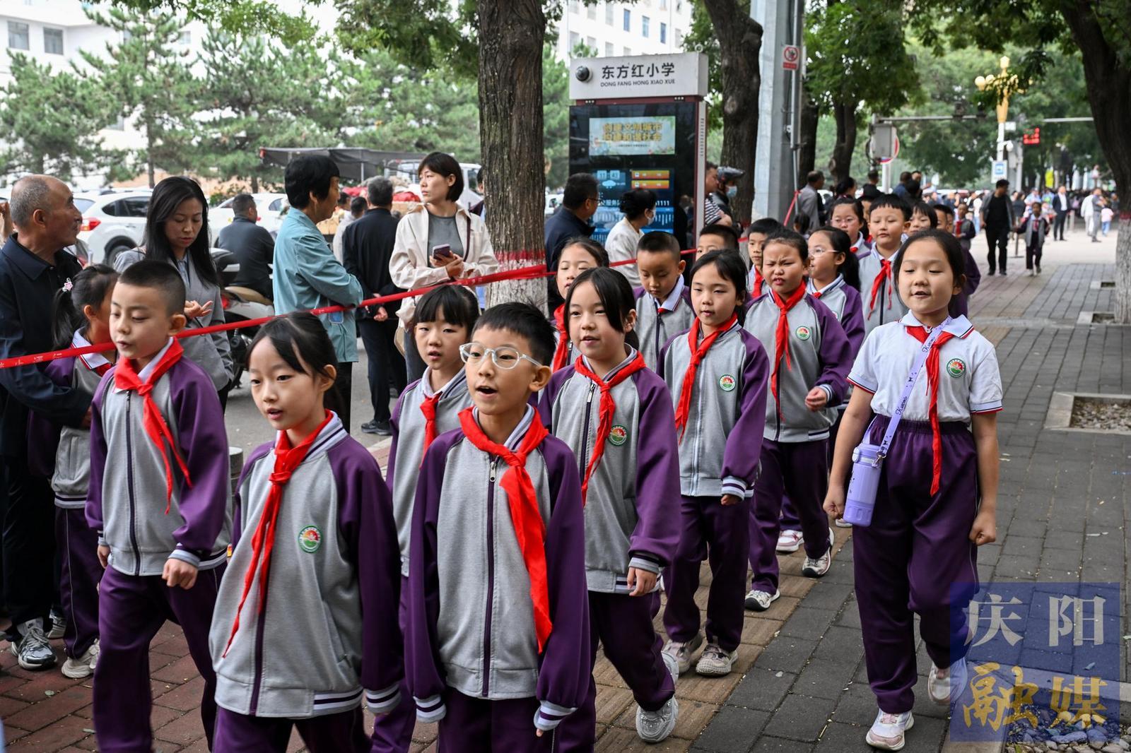 慶陽市東方紅小學(xué)放學(xué)路隊整齊劃一,歌聲昂揚。