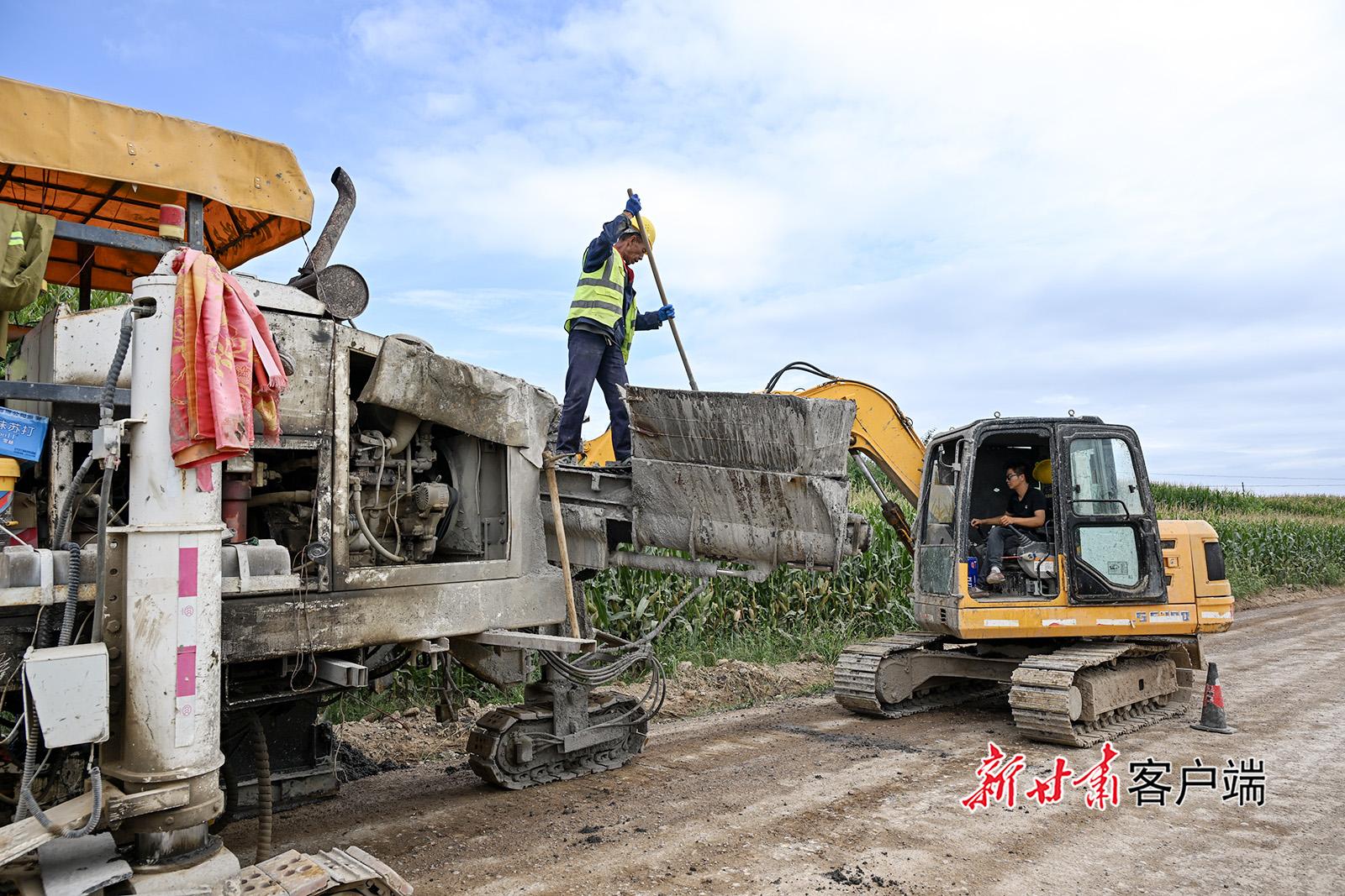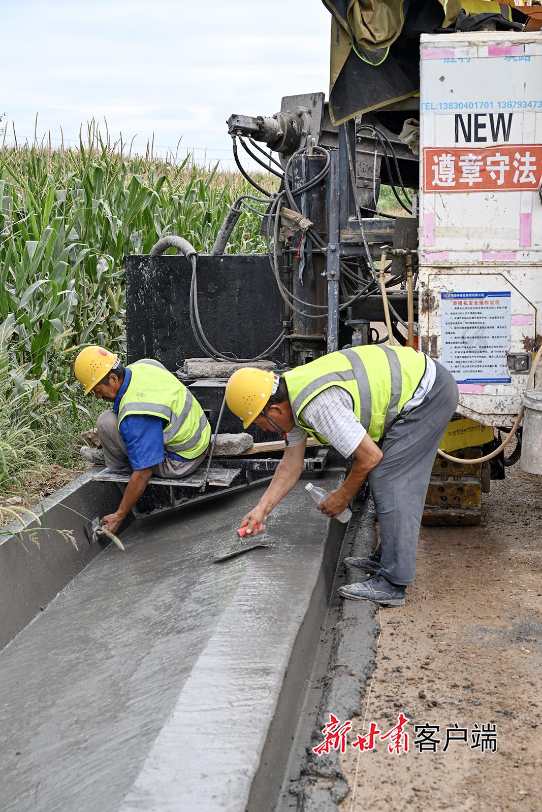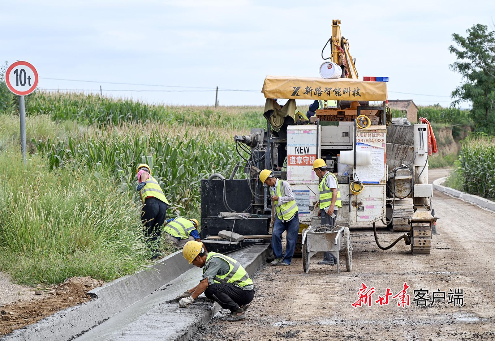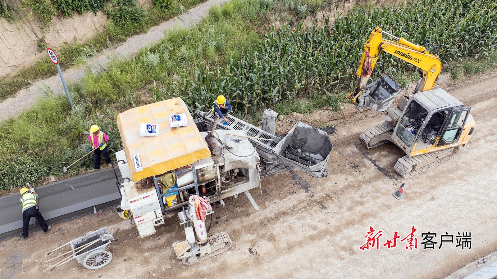 8月22日,位于正寧縣境內(nèi)的S501線五頃塬至三嘉公路改建工程建設現(xiàn)場,工人正在相互協(xié)作,進行附屬邊溝施工。