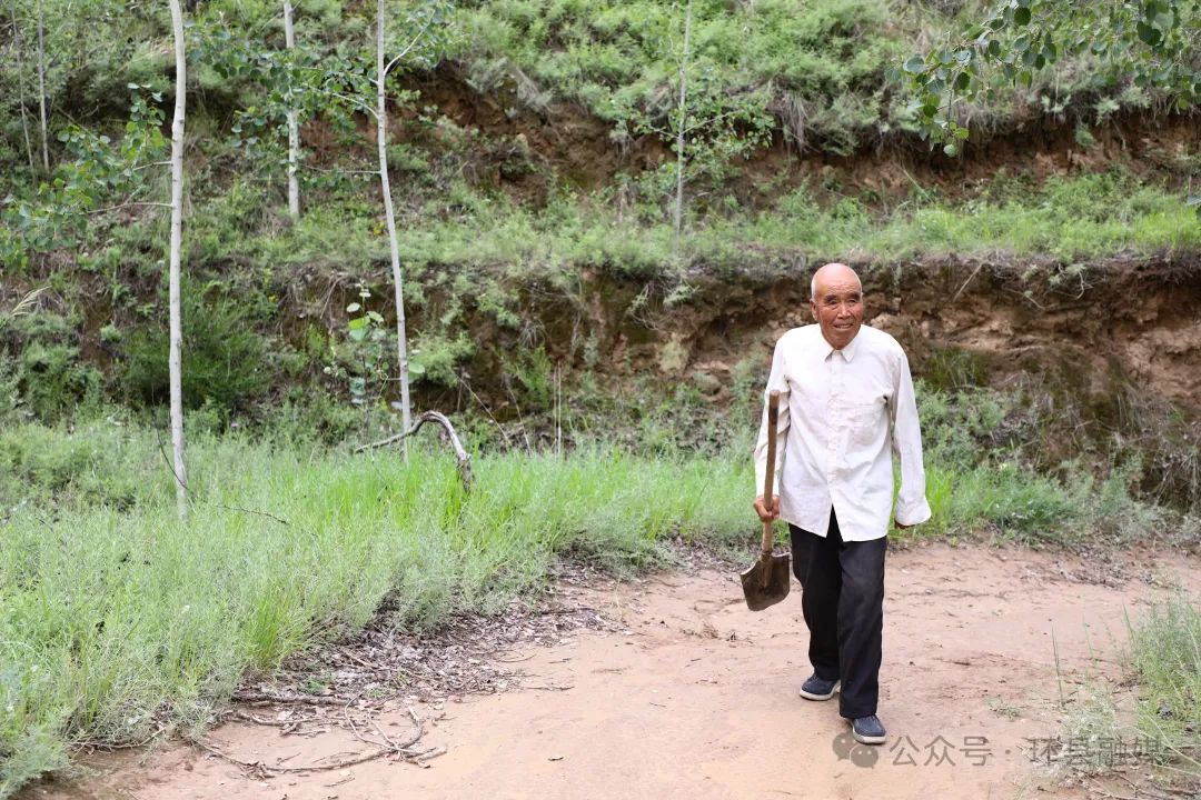 環(huán)縣虎洞鎮(zhèn)砂井子村苗家山,一片由老人親手栽植的千畝林海在秋風(fēng)中沙沙作響。83歲的苗志義拄著鐵鍬站在山梁上,頭發(fā)花白稀少,臉上刻滿皺紋,雙手布滿厚繭,唯有那雙望向山林的眼睛依然清亮如少年。在他身后,一棵經(jīng)霜愈艷的紅楓樹正傲然挺立,宛如這位與風(fēng)沙抗?fàn)幤呤噍d的造林人的精神圖騰。