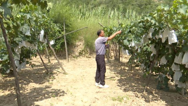 “我現(xiàn)在種植的葡萄是巨峰和戶太8號(hào)兩種,主要是在309國(guó)道邊售賣為主,也可以到園里采摘。我們還做了葡萄酒,每年元旦開始銷售,效益還可以?!崩铣擎?zhèn)牧家溝村村民陶海龍說。