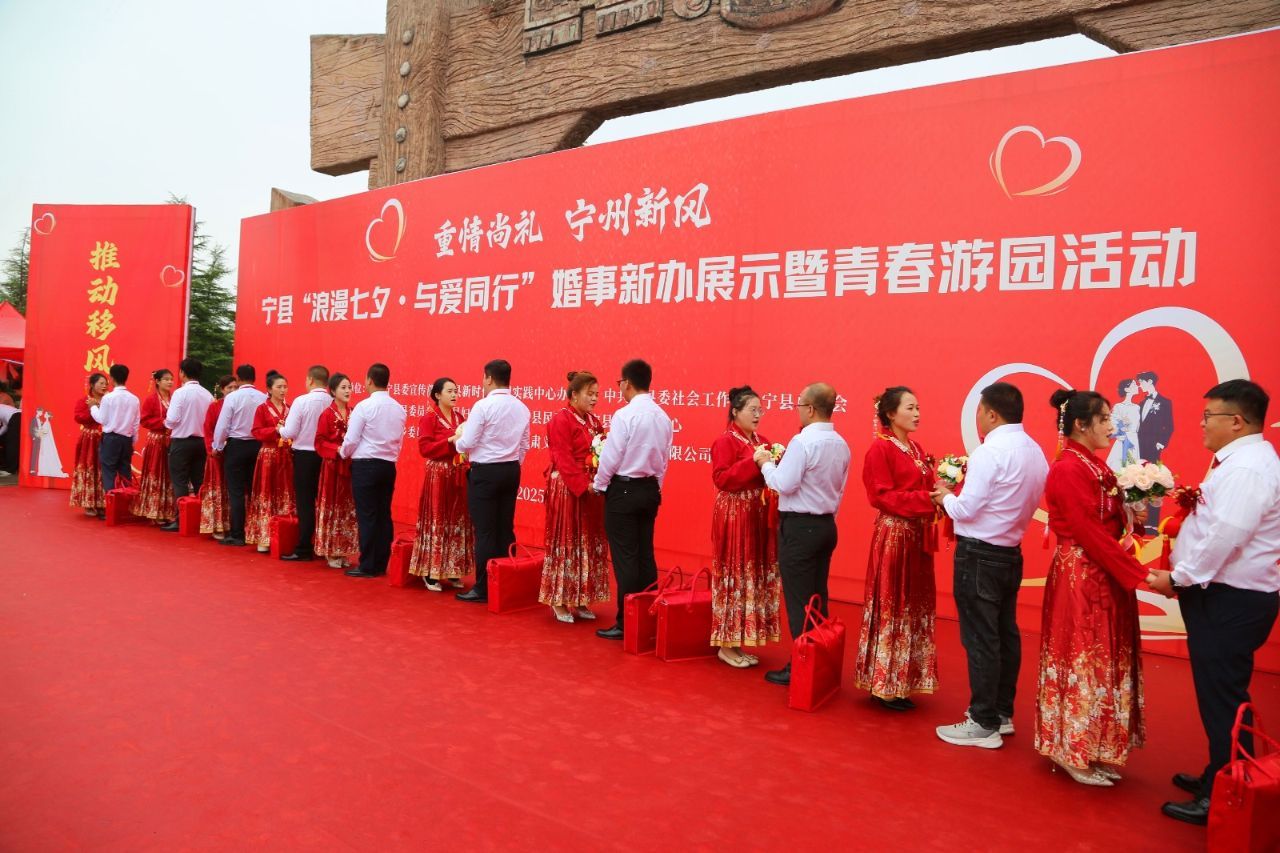 (全媒體記者 曹康)農(nóng)歷七月六日,寧縣瓦斜鄉(xiāng)永吉村義渠百花園內(nèi)花團(tuán)錦簇、笑語(yǔ)盈盈,一場(chǎng)別開生面的集體婚禮在此舉辦,十對(duì)新人攜手步入婚姻殿堂。這場(chǎng)簡(jiǎn)約而不失溫馨的儀式,不僅彰顯了寧縣青年對(duì)愛情的忠貞,更折射出寧縣鄉(xiāng)風(fēng)文明建設(shè)的深刻變革。