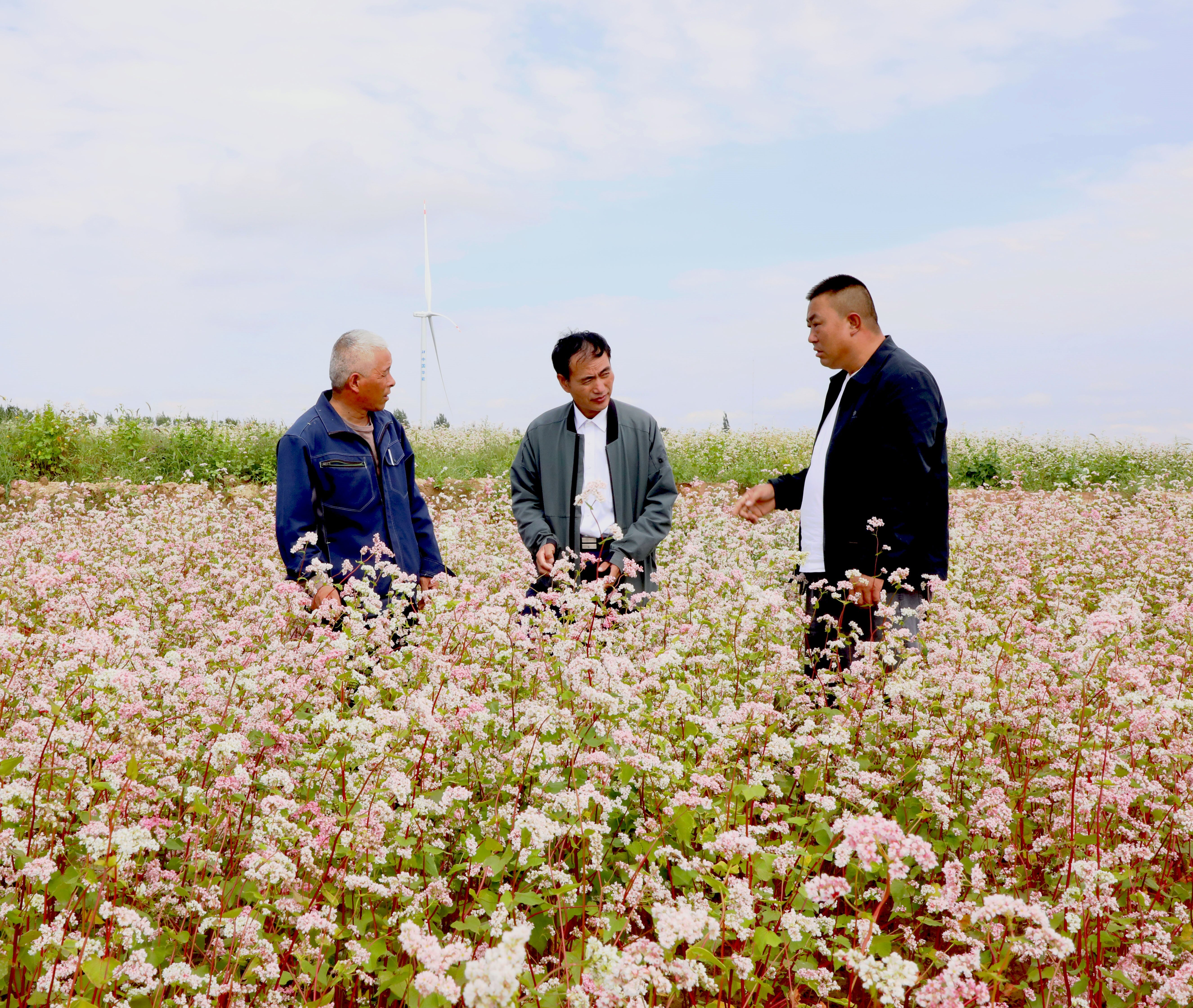 今年村里新推了高標(biāo)準(zhǔn)農(nóng)田,他趁機(jī)流轉(zhuǎn)了100多畝土地種蕎麥和苦蕎。“高標(biāo)準(zhǔn)農(nóng)田確實(shí)方便,大型機(jī)械能直接進(jìn)地,種地省事多了。雨水還能全滲進(jìn)地里不外流,你看這蕎麥,墑情好得很,都長(zhǎng)過1米高了!”他指著眼前大片起伏的花海,語氣里滿是贊嘆。