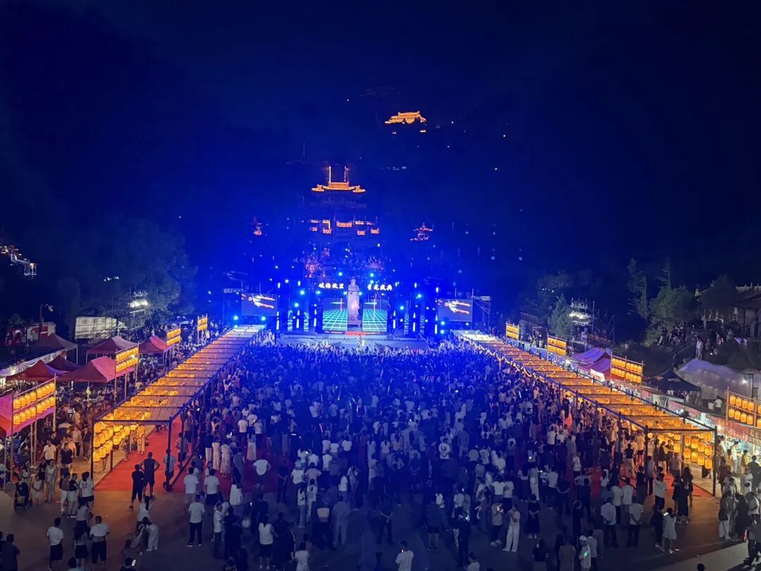 夜間的慶城同樣精彩。8月6日晚,岐伯廣場篝火狂歡夜啟幕,非遺展演、民歌對唱、集體舞輪番上演,游客載歌載舞,盡顯全民同樂氛圍。8月16日,電音節(jié)“狂歡夜”吸引數(shù)萬游客,西安頂流樂隊帶來搖滾與電音盛宴,原創(chuàng)曲目與經(jīng)典歌曲引發(fā)萬人合唱,現(xiàn)場閃光燈與星空交相輝映。