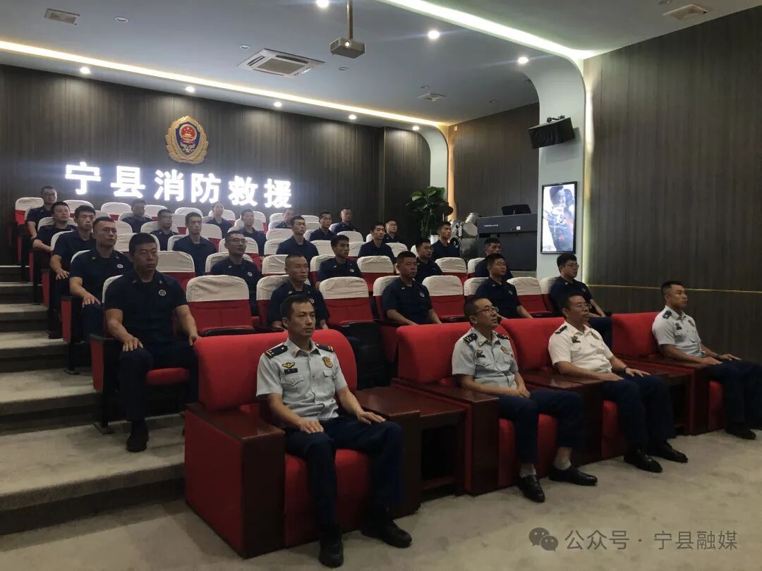 在縣消防救援大隊(duì),消防指戰(zhàn)員們統(tǒng)一著裝,坐姿筆挺,集中收看紀(jì)念大會(huì)盛況。