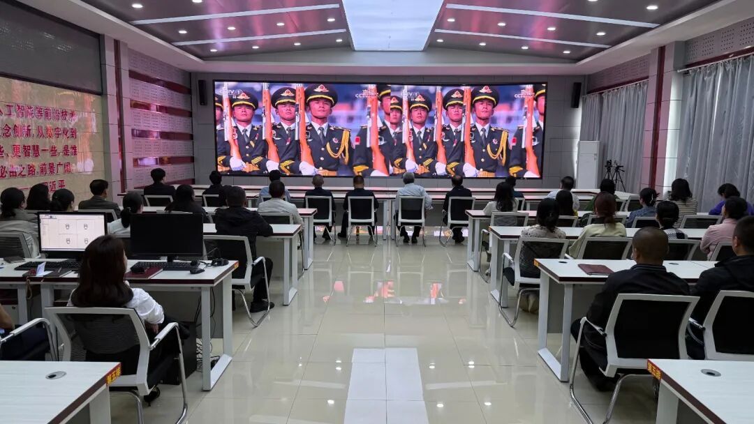一大早,華池縣南梁革命紀念館的全體職工便早早來到紀念館的會議室,他們整齊地坐在會議桌前,每個人的臉上都洋溢著期待與激動的神情。會議室的大屏幕上,已經(jīng)顯示出了閱兵儀式的預熱畫面,職工們目不轉(zhuǎn)睛地盯著屏幕,仿佛已經(jīng)置身于天安門廣場的閱兵現(xiàn)場,共同見證這一神圣而莊嚴的時刻。
