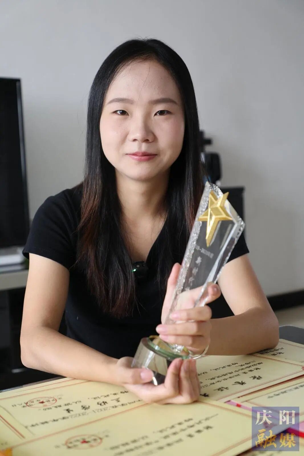郭麗萍手捧獎杯。慶陽融媒記者 閆慧攝