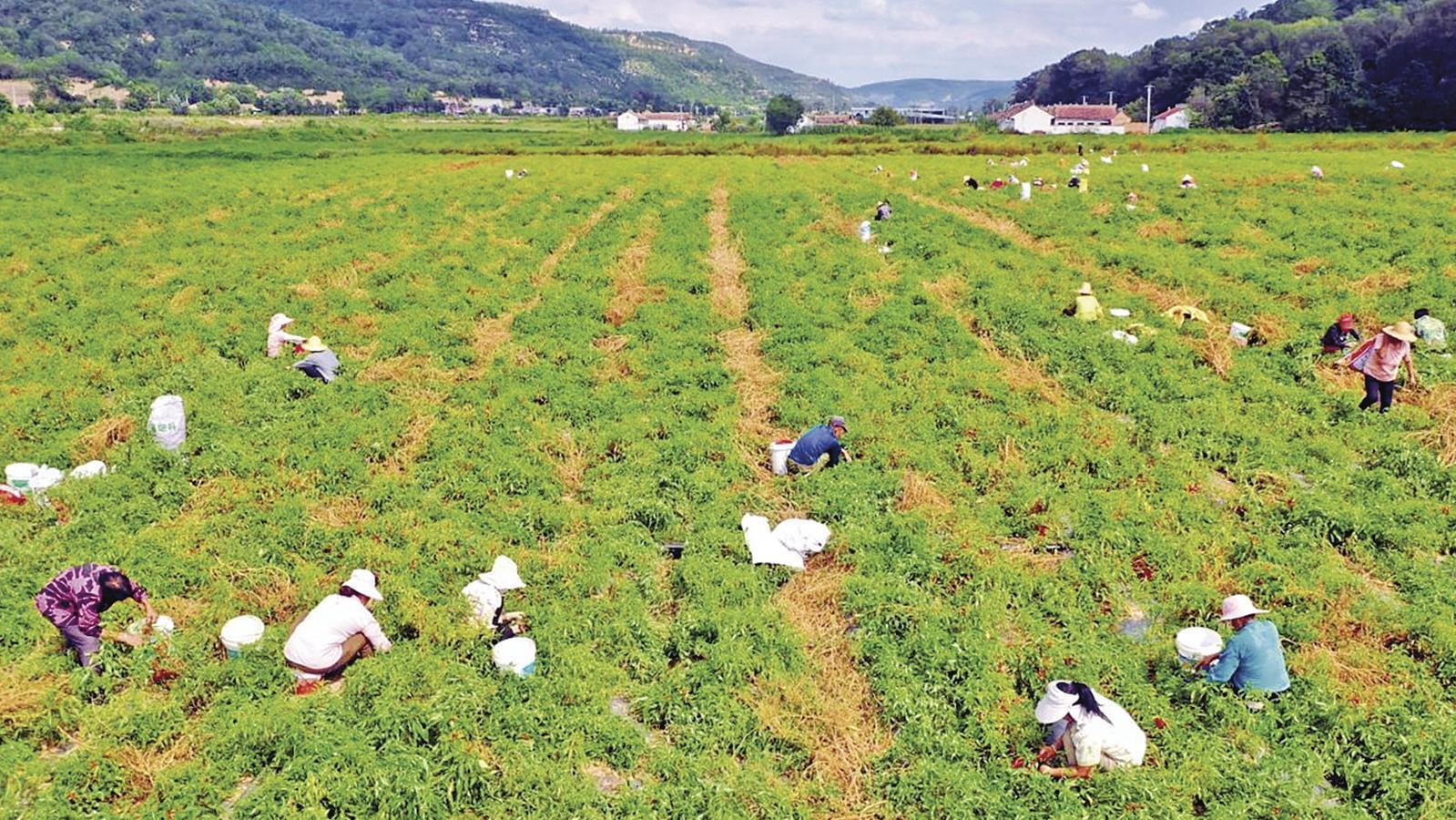 初秋時(shí)節(jié),寧縣湘樂鎮(zhèn)的辣椒地里,飽滿的朝天椒綴滿枝頭,群眾穿梭其間,動(dòng)作嫻熟地采摘、搬運(yùn),勾勒出一幅火紅的豐收畫卷。 湘樂鎮(zhèn)圍繞“辣椒小鎮(zhèn)”建設(shè)目標(biāo),通過實(shí)施“黨支部+龍頭企業(yè)+合作社+農(nóng)戶”模式,讓黨組織真正嵌入產(chǎn)業(yè)鏈,讓黨員力量凝聚在每一個(gè)生產(chǎn)環(huán)節(jié),成為產(chǎn)業(yè)發(fā)展的堅(jiān)強(qiáng)支撐。今年,全鎮(zhèn)朝天椒種植面積達(dá)8000畝,預(yù)計(jì)總產(chǎn)量可達(dá)1.2萬噸,年總產(chǎn)值將突破4000萬元,實(shí)現(xiàn)規(guī)模與質(zhì)量的雙提升。