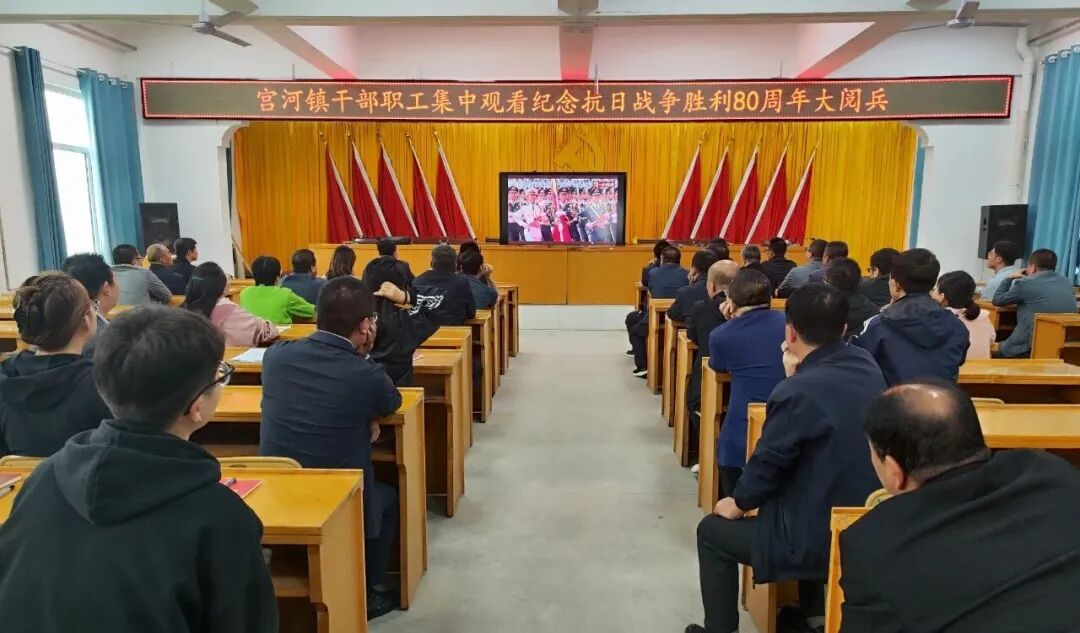 山河鎮(zhèn)、宮河鎮(zhèn)組織干部職工收看紀(jì)念中國(guó)人民抗日戰(zhàn)爭(zhēng)暨世界反法西斯戰(zhàn)爭(zhēng)勝利80周年大會(huì)直播。