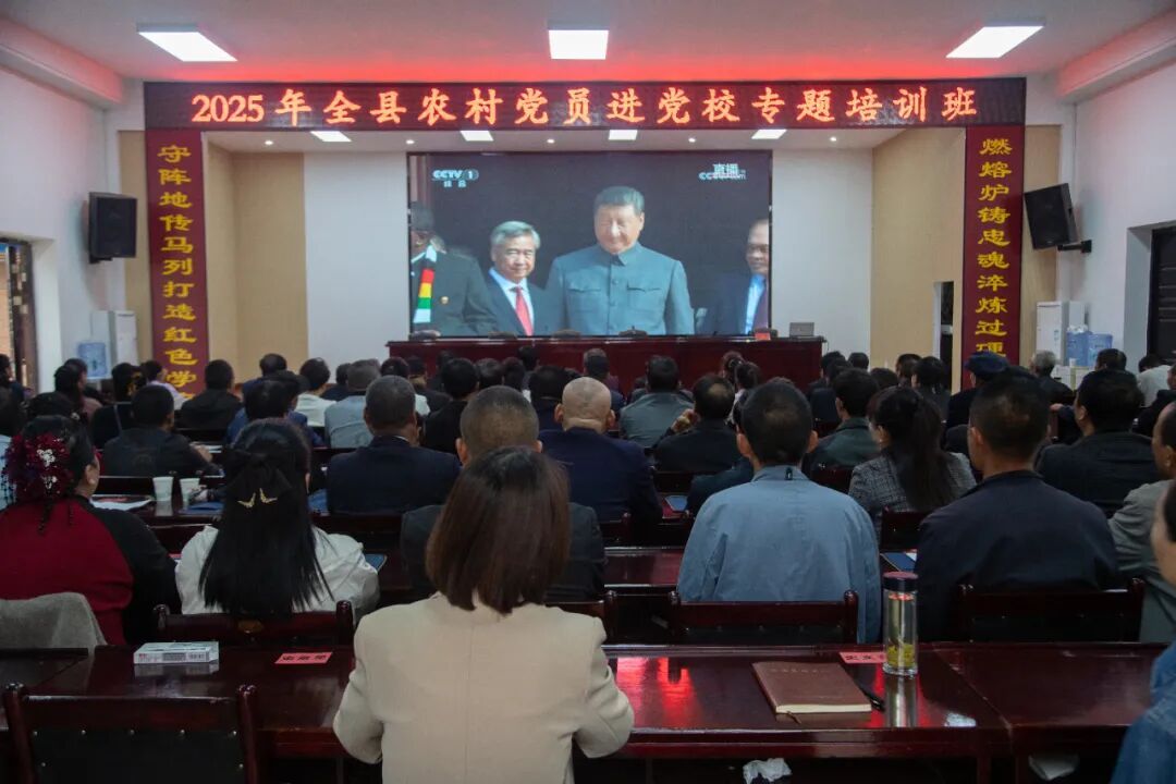 農(nóng)村黨員在縣委黨校集中收看紀(jì)念中國(guó)人民抗日戰(zhàn)爭(zhēng)暨世界反法西斯戰(zhàn)爭(zhēng)勝利80周年大會(huì)直播。