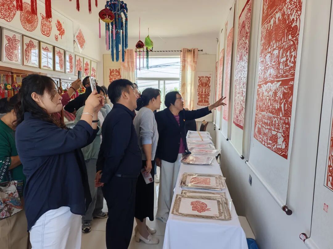 “這張‘紅星’剪紙看似簡(jiǎn)單,卻時(shí)刻提醒我們黨員不忘初心、牢記使命!”主題黨日活動(dòng)后,鎮(zhèn)機(jī)關(guān)黨員張寶陳手持作品激動(dòng)地分享。在“剪紙頌華誕·黨員踐初心”的現(xiàn)場(chǎng),全體黨員佩戴徽章,面向黨旗重溫入黨誓詞,錚錚誓言彰顯初心。伴隨著《紅旗頌》激昂的旋律,大家紛紛執(zhí)剪創(chuàng)作,以傳統(tǒng)藝術(shù)表達(dá)對(duì)黨和祖國(guó)的深厚情感?;顒?dòng)最后,大家共同參觀非遺剪紙展廳,在一幅幅生動(dòng)的作品中感悟紅色力量,凝聚奮進(jìn)共識(shí)。如今,在三里店村,“家家有紅色元素,戶戶傳黨的聲音”已成為新風(fēng)尚,有的家庭用剪紙裝飾門窗,有的家庭將紅色故事融入剪紙創(chuàng)作,紅色基因通過指尖藝術(shù),在潛移默化中浸潤(rùn)群眾心田。