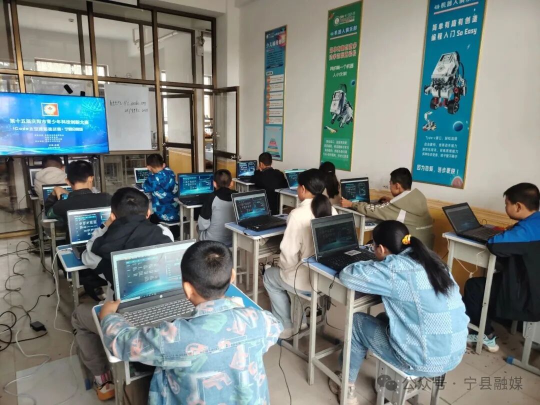 經(jīng)過激烈角逐,來自寧縣早勝二小的趙家毅、寧縣寧江小學(xué)的高駿、寧縣早勝鎮(zhèn)中心小學(xué)的何家樂、寧縣早勝初級中學(xué)的王棪斌、寧縣城關(guān)小學(xué)的王一同、寧縣焦村鎮(zhèn)吝店小學(xué)的田潤澤在 ICode 編創(chuàng)未來挑戰(zhàn)賽斬獲一等獎;寧縣早勝小學(xué)的王皓晨、李晨碩斬獲競技機器人競賽一等獎;寧縣寧江小學(xué)的蘇翊晗在賽博都市挑戰(zhàn)賽斬獲一等獎;寧縣寧江小學(xué)的呂昭睿、王易陽在Make X 系列工程挑戰(zhàn)賽中斬獲一等獎。
