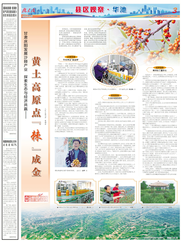 記者來到甘肅省慶陽市一探究竟。近年來,當地以華池縣為沙棘產業(yè)主體發(fā)展區(qū),推動周邊各縣協同發(fā)展。通過系統性完善沙棘的育苗、種植、采摘及深度加工全鏈條,慶陽不僅讓荒山禿嶺披上綠裝、水土流失得到有效遏制,更是將生態(tài)效益轉化為實實在在的經濟和社會效益。