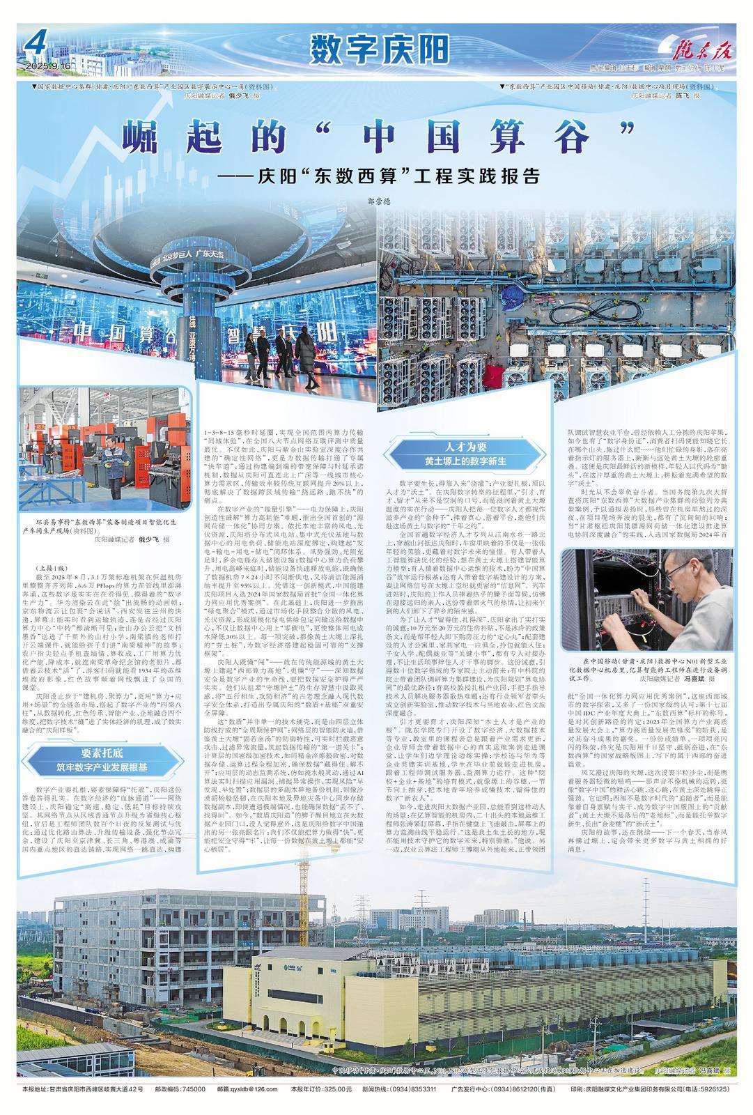 時光從不會辜負奮斗者。當(dāng)國務(wù)院第九次大督查將慶陽“東數(shù)西算”大數(shù)據(jù)產(chǎn)業(yè)集群的經(jīng)驗列為典型案例、予以通報表揚時,那些曾在機房里熬過的深夜、在項目現(xiàn)場奔波的晨光,都有了沉甸甸的回響;當(dāng)“甘肅樞紐慶陽集群源網(wǎng)荷儲一體化建設(shè)推進算電協(xié)同深度融合”的實踐,入選國家數(shù)據(jù)局2024年首批“全國一體化算力網(wǎng)應(yīng)用優(yōu)秀案例”,這座西部城市的數(shù)字探索,又多了一份國家級的認可;第十七屆中國IDC產(chǎn)業(yè)年度大典上,“東數(shù)西算”標桿的稱號,是對其創(chuàng)新路徑的肯定;2023年全國算力產(chǎn)業(yè)高質(zhì)量發(fā)展大會上,“算力高質(zhì)量發(fā)展先鋒獎”的斬獲,是對其奮斗成果的嘉獎。一份份成績單、一項項亮閃閃的殊榮,終究是慶陽用千日堅守、砥礪奮進,在“東數(shù)西算”的國家戰(zhàn)略版圖上,寫下的屬于西部的奮進篇章。