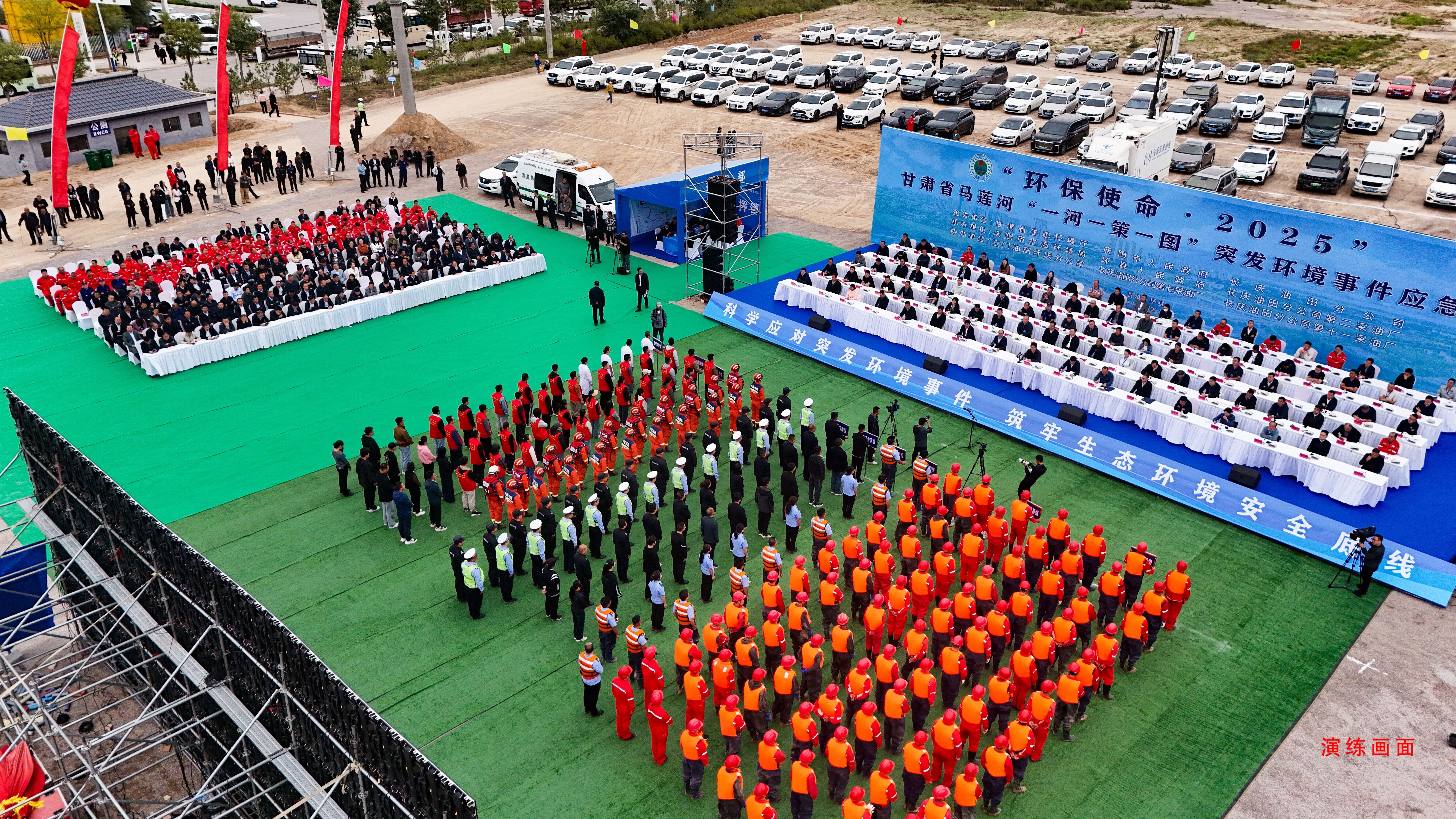 此次演練由甘肅省生態(tài)環(huán)境廳、慶陽市人民政府、長慶油田分公司主辦;慶陽市生態(tài)環(huán)境局、環(huán)縣人民政府、長慶油田分公司第二采油廠承辦;有關(guān)部門、企業(yè)參加演練。通過實戰(zhàn)+場景模擬和“雙情景”的形式開展實戰(zhàn)化應(yīng)急處置,全面檢驗區(qū)域突發(fā)環(huán)境事件應(yīng)對能力。