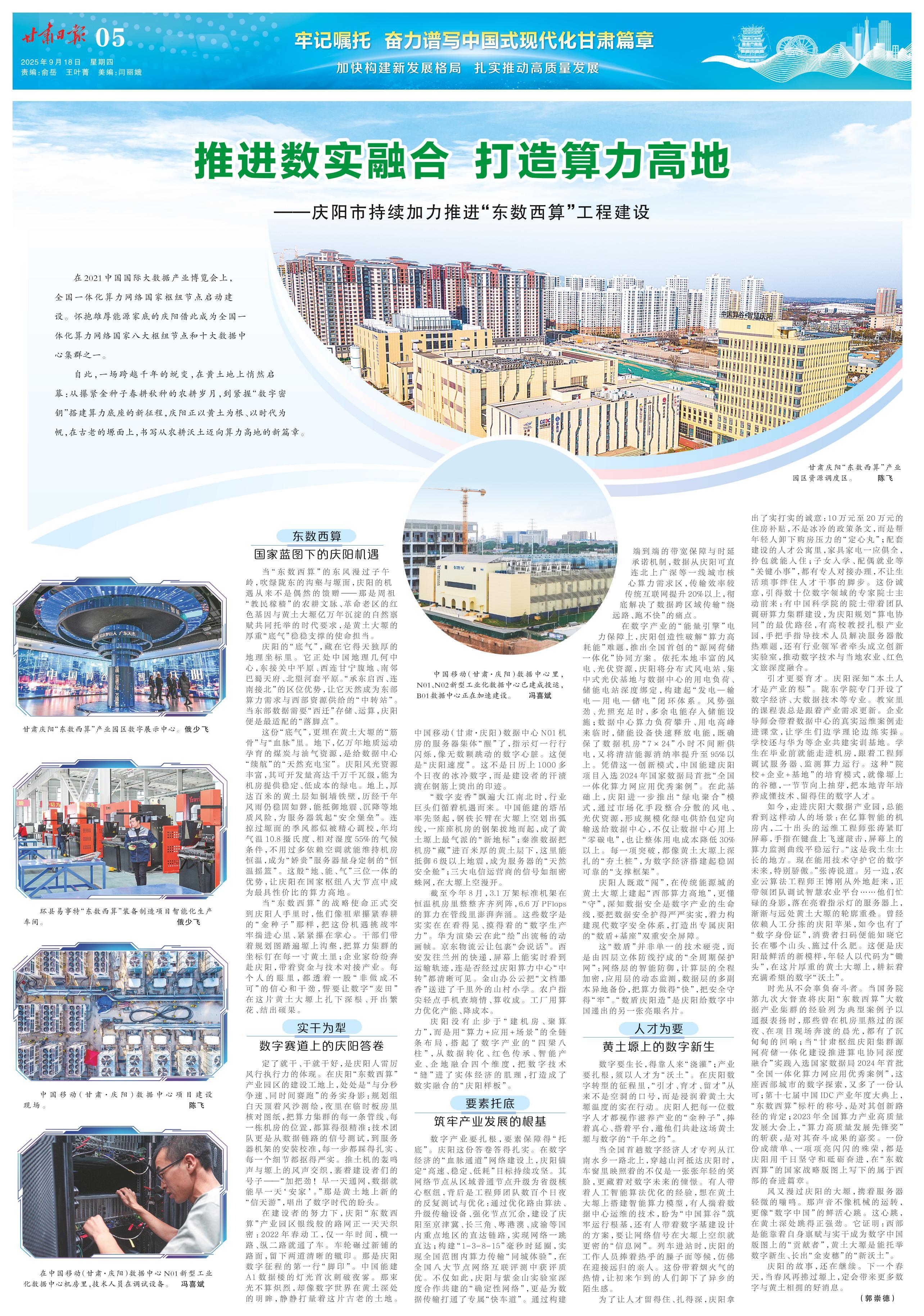 自此,一場跨越千年的蛻變,在黃土地上悄然啟幕:從攥緊金種子春耕秋種的農耕歲月,到緊握“數字密鑰”搭建算力底座的新征程,慶陽正以黃土為根、以時代為帆,在古老的塬面上,書寫從農耕沃土邁向算力高地的新篇章。