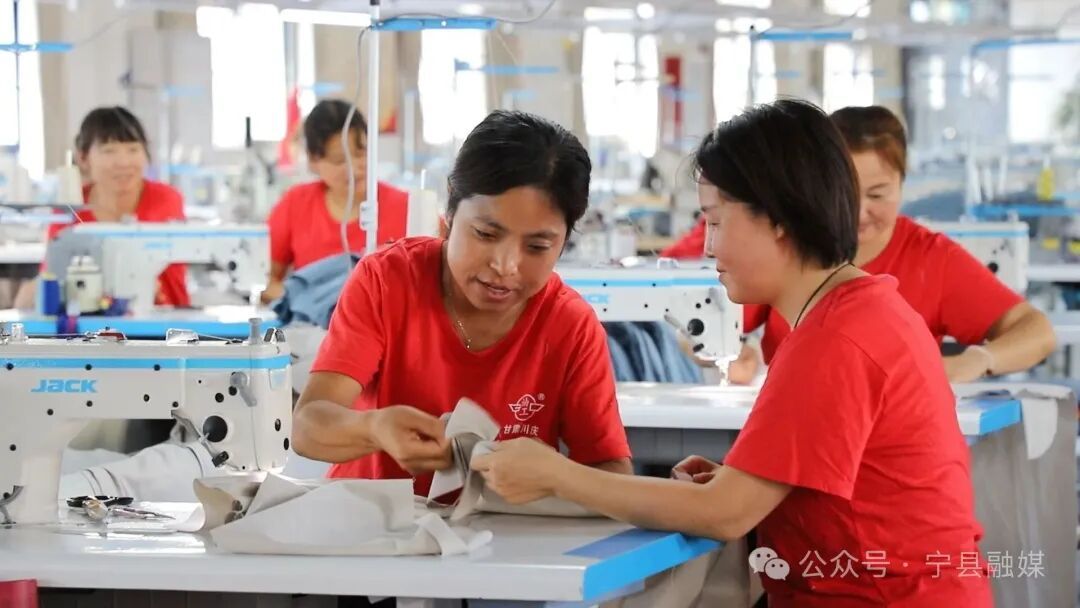 走進寧縣和盛鎮(zhèn)川慶制衣就業(yè)工廠,縫紉機嗡嗡作響,裁剪、縫制、熨燙、檢驗、包裝,工人們分工合作,在各自崗位鉚足干勁趕制訂單,現(xiàn)場忙而有序。