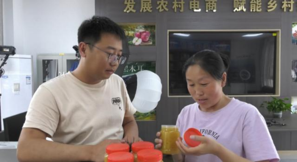 在蒿咀鋪鄉(xiāng)蒿咀鋪村農(nóng)副產(chǎn)品合作社,村民鄧娟將新產(chǎn)的土蜂蜜拿到這里,隨后這些土蜂蜜便搭乘電商“快車”,到達消費者手中。