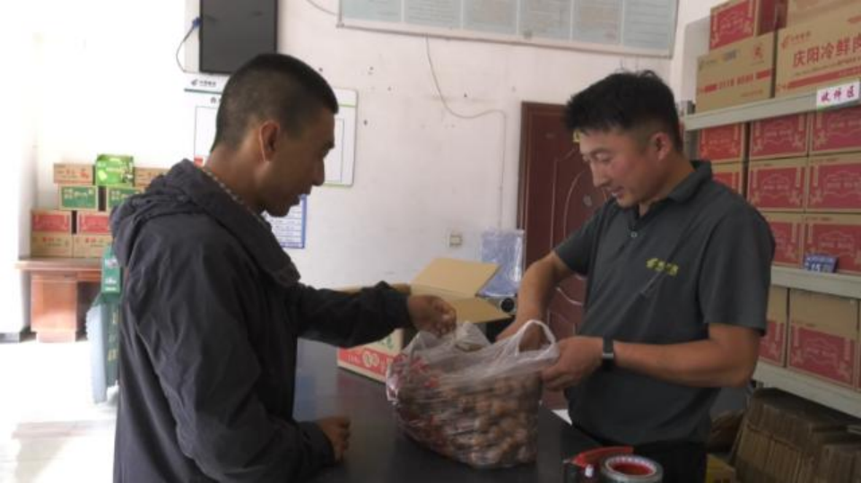 賈占鵬是板橋鎮(zhèn)曹塬村村民,平時主要靠種地和發(fā)展養(yǎng)殖維持家庭收入。今年他家的核桃和杏干產(chǎn)量不錯,但苦于沒有銷路。在得知板橋郵政所可以幫助農(nóng)戶銷售農(nóng)特產(chǎn)品后,賈占鵬便將自家的核桃和杏干拿到了板橋郵政所通過電商進行銷售。
