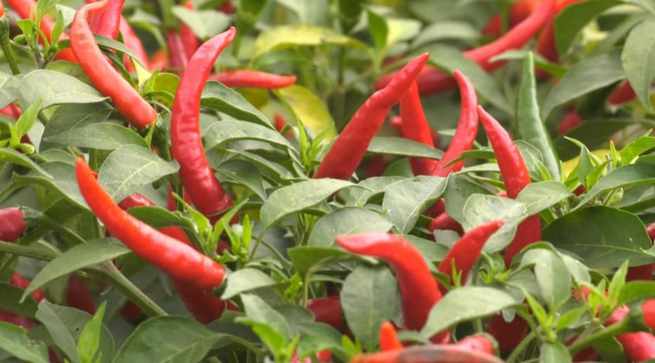 王彩粉說:“來這里摘辣椒,我一天能摘200多斤,掙100多元錢,離家近也方便?!?/p>