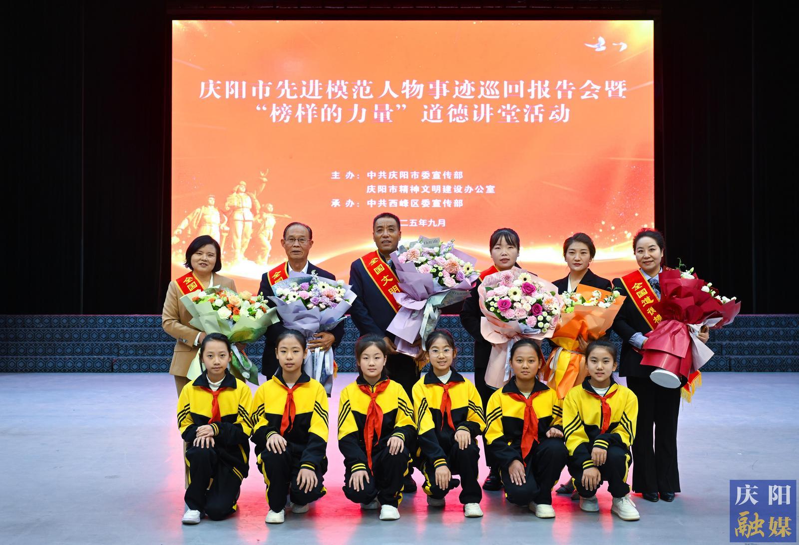 9月23日,慶陽市先進(jìn)模范人物事跡巡回報(bào)告會暨“榜樣的力量”道德講堂活動在市政府禮堂舉行?;顒友埩嗣搧喞颉⒗詈?、葛莉娜、司登科、許改燕、楊雪6位來自全市各行業(yè)的先進(jìn)模范,為現(xiàn)場550余名觀眾帶來一場觸動心靈的精神盛宴。
