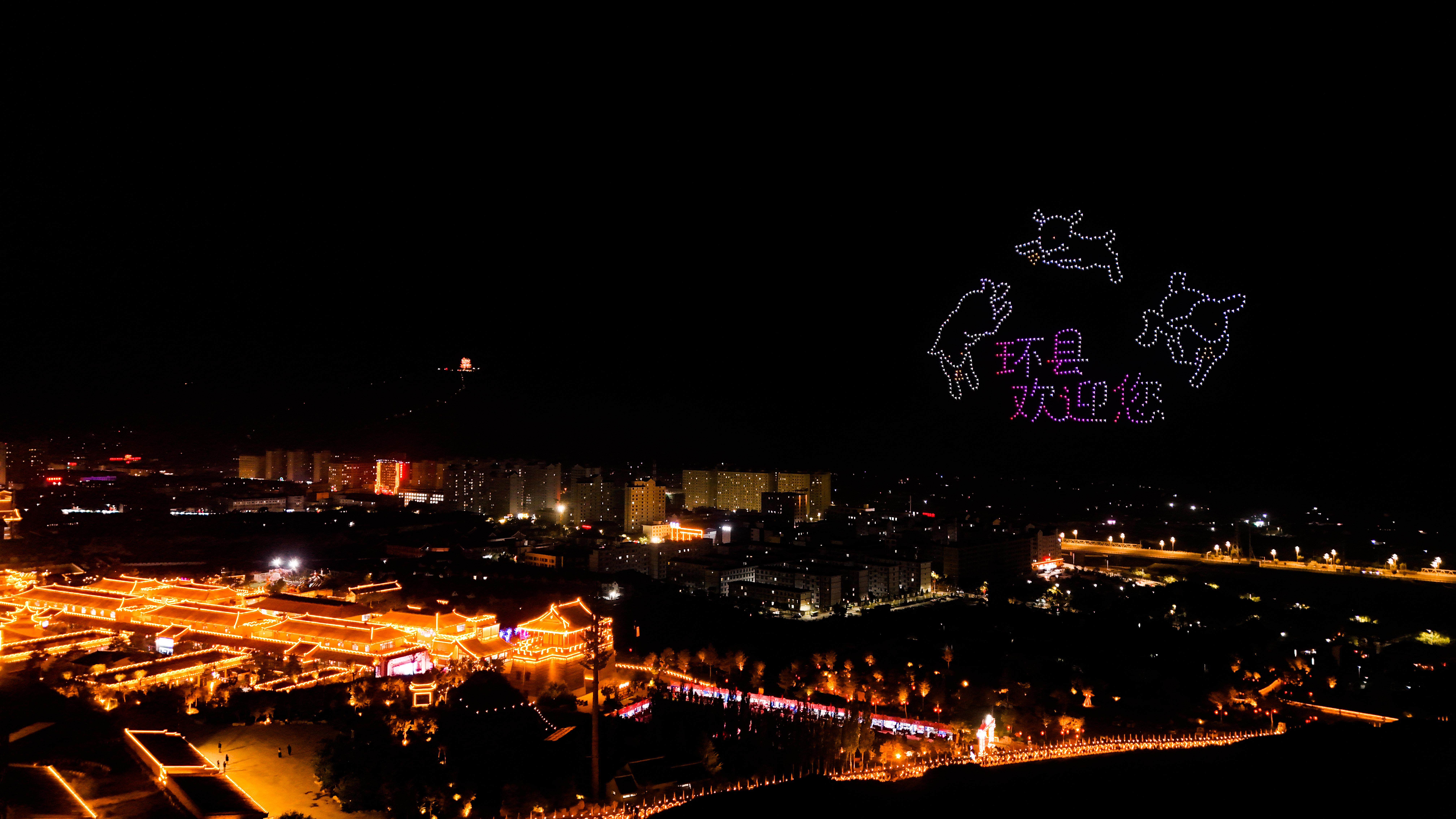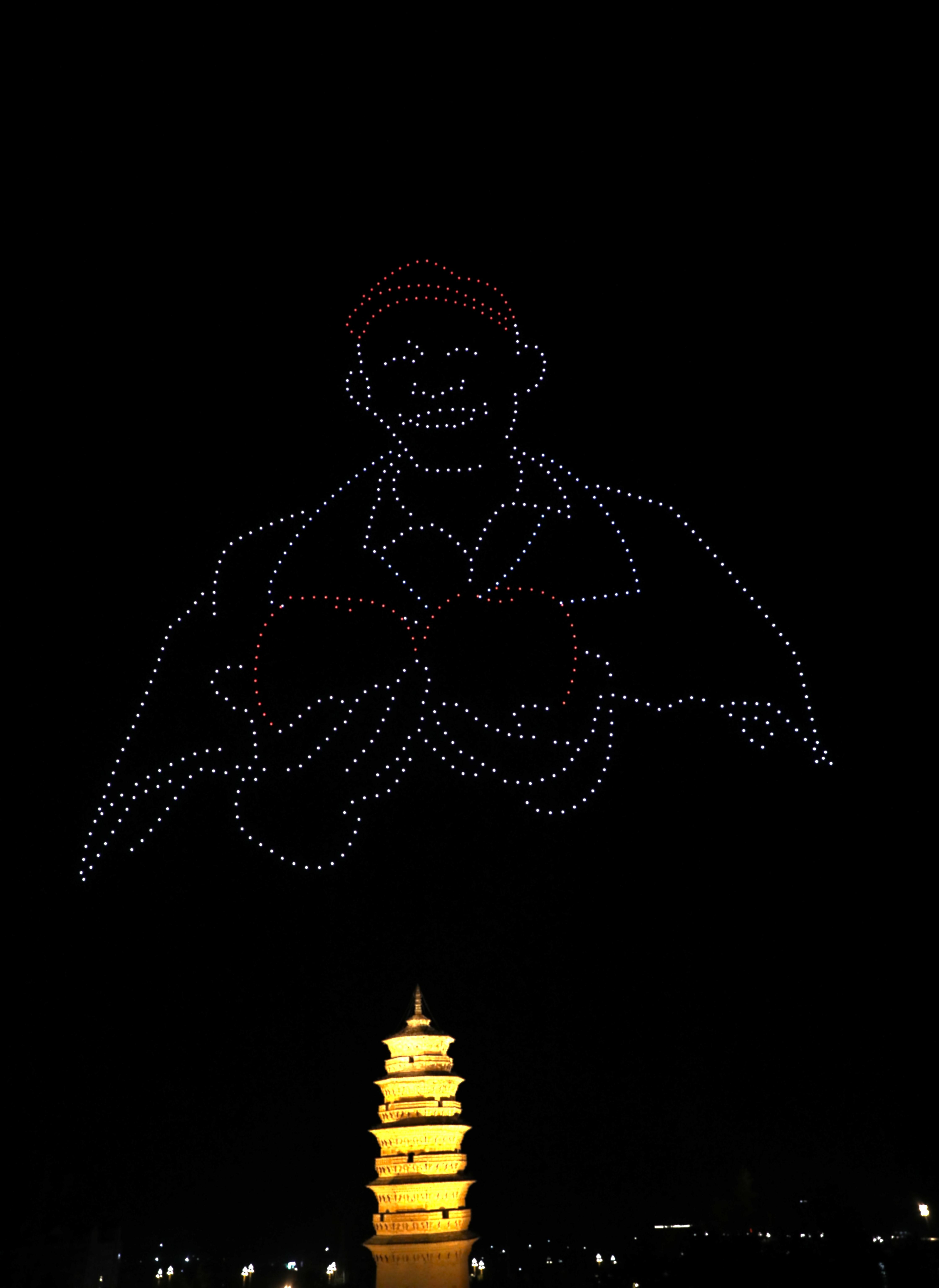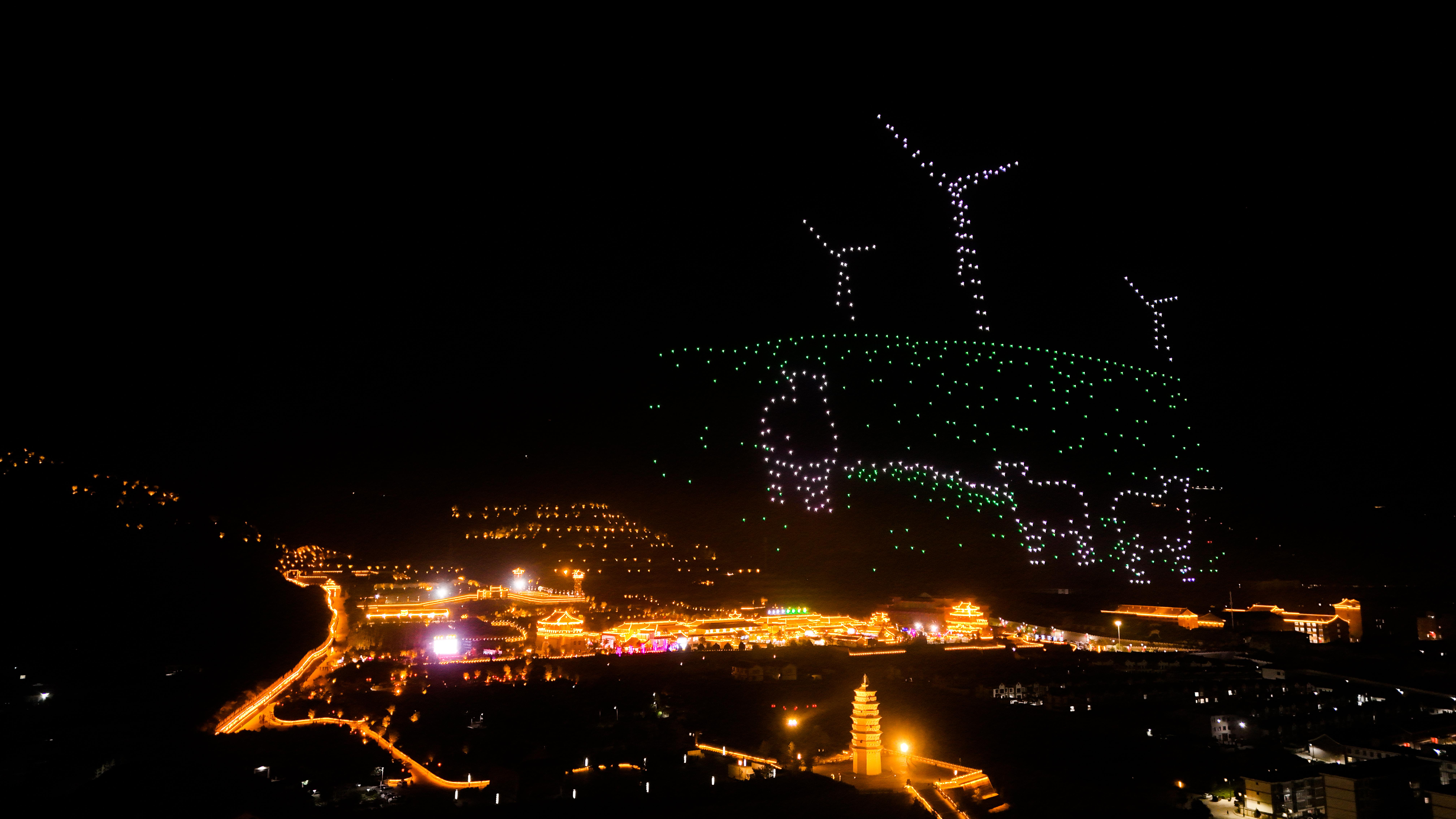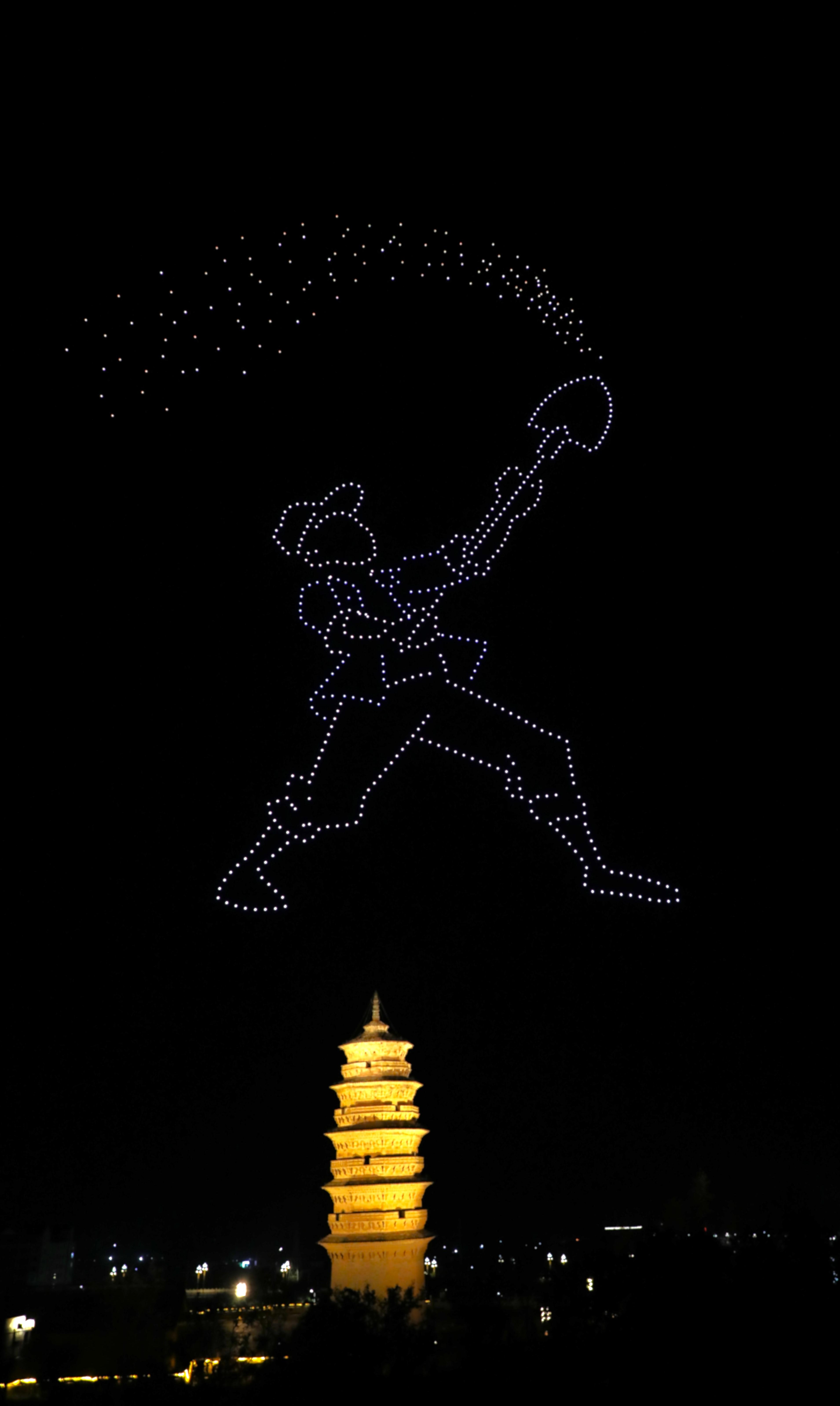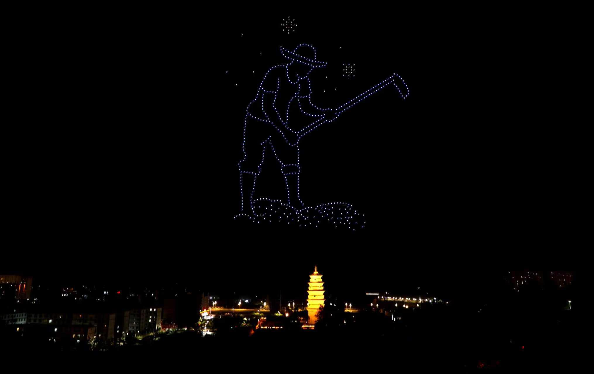 9月23日晚8時(shí),環(huán)縣環(huán)州故城景福門廣場上空星光璀璨,一場由600架無人機(jī)聯(lián)袂演繹的“農(nóng)牧交響”視覺盛宴在此震撼上演,為當(dāng)?shù)厝罕姾陀慰瞳I(xiàn)上了一份別開生面的“豐收禮贊”。