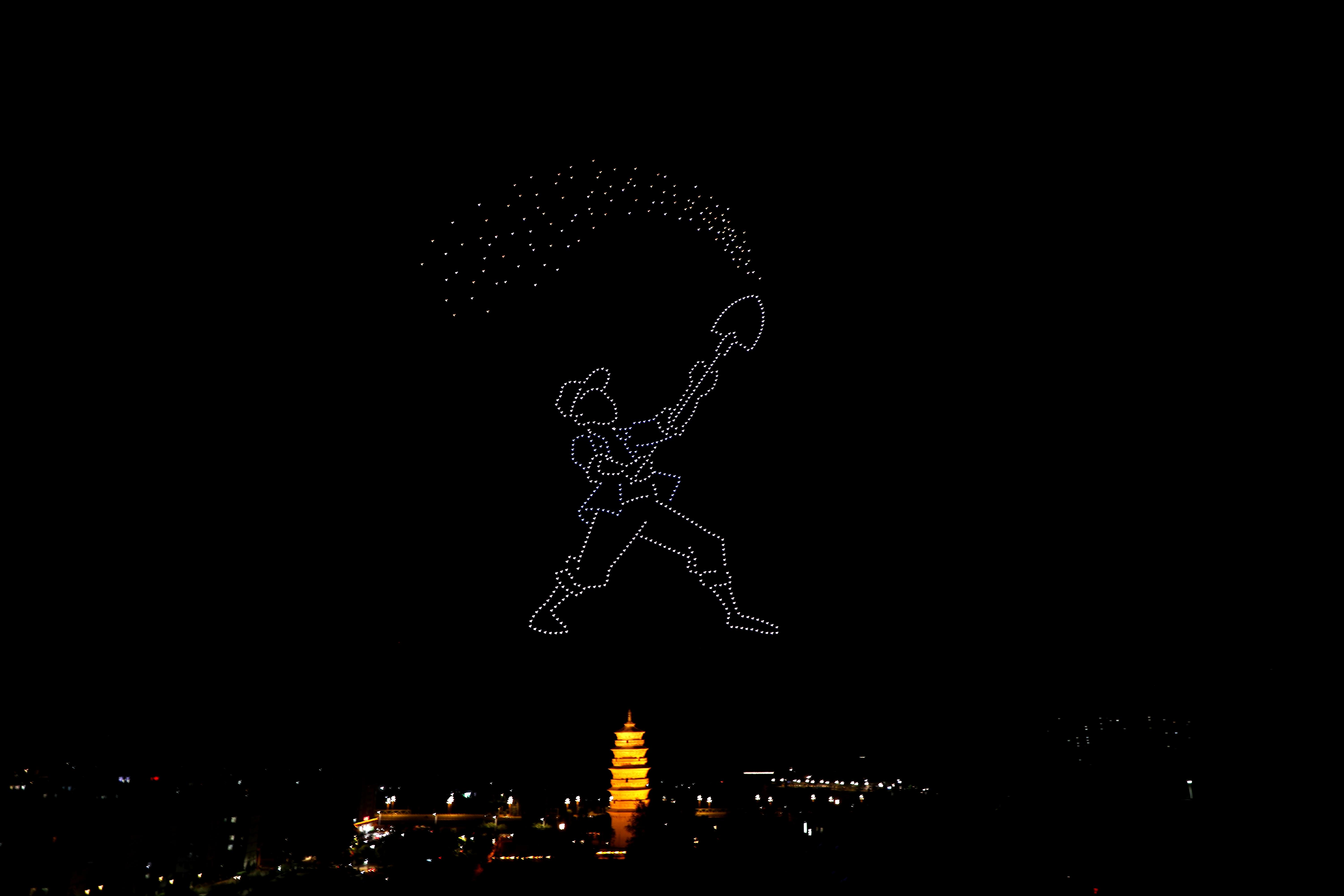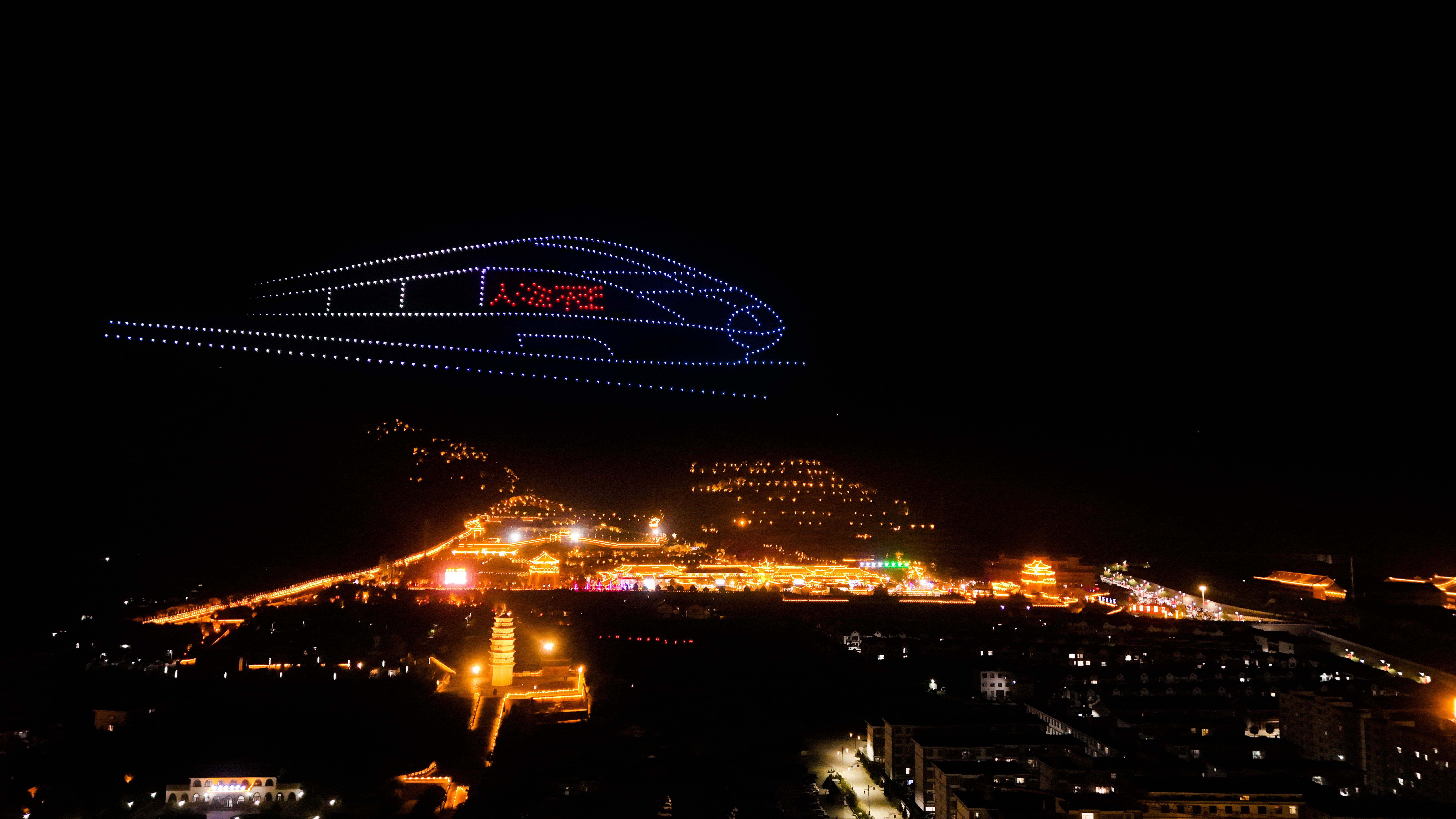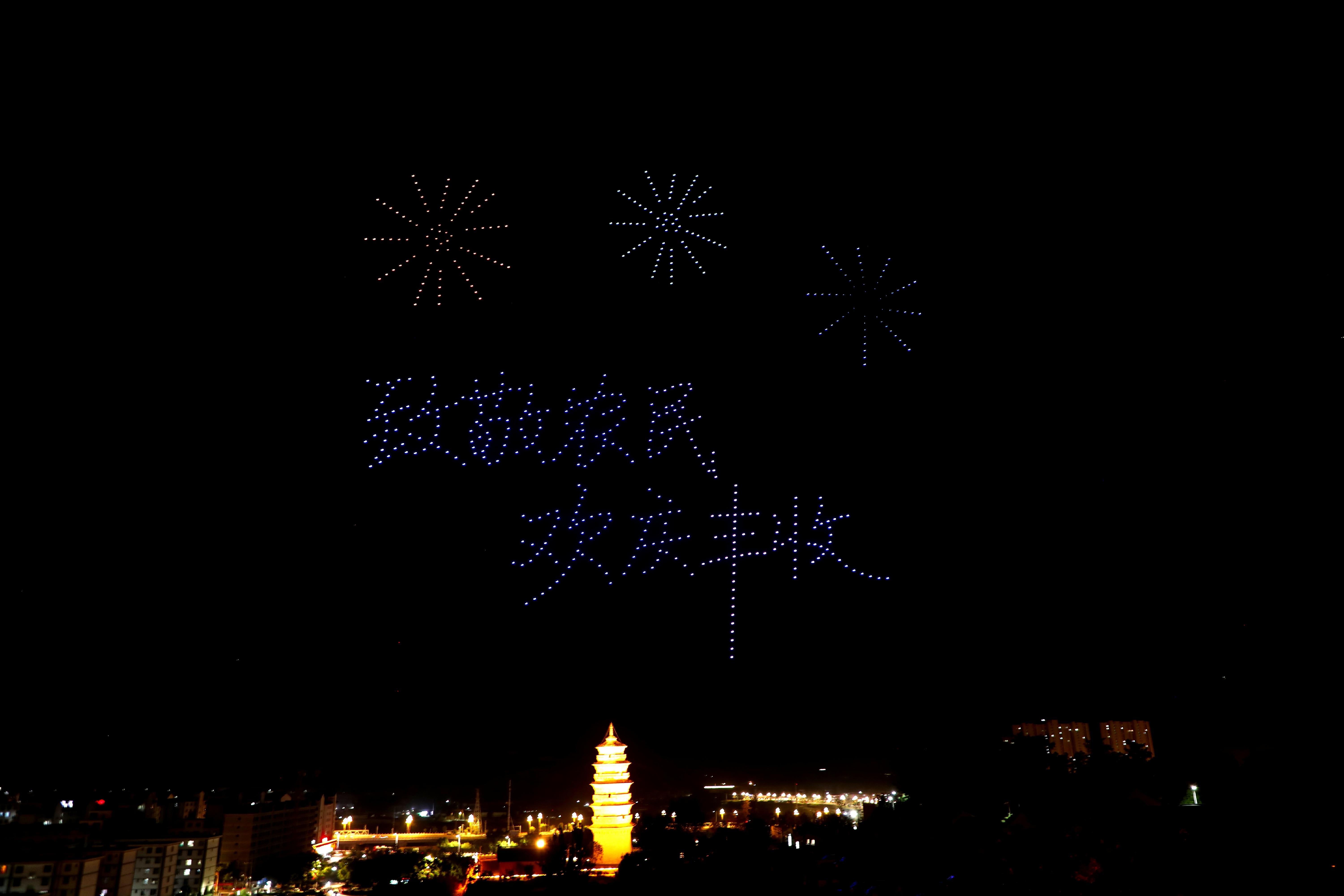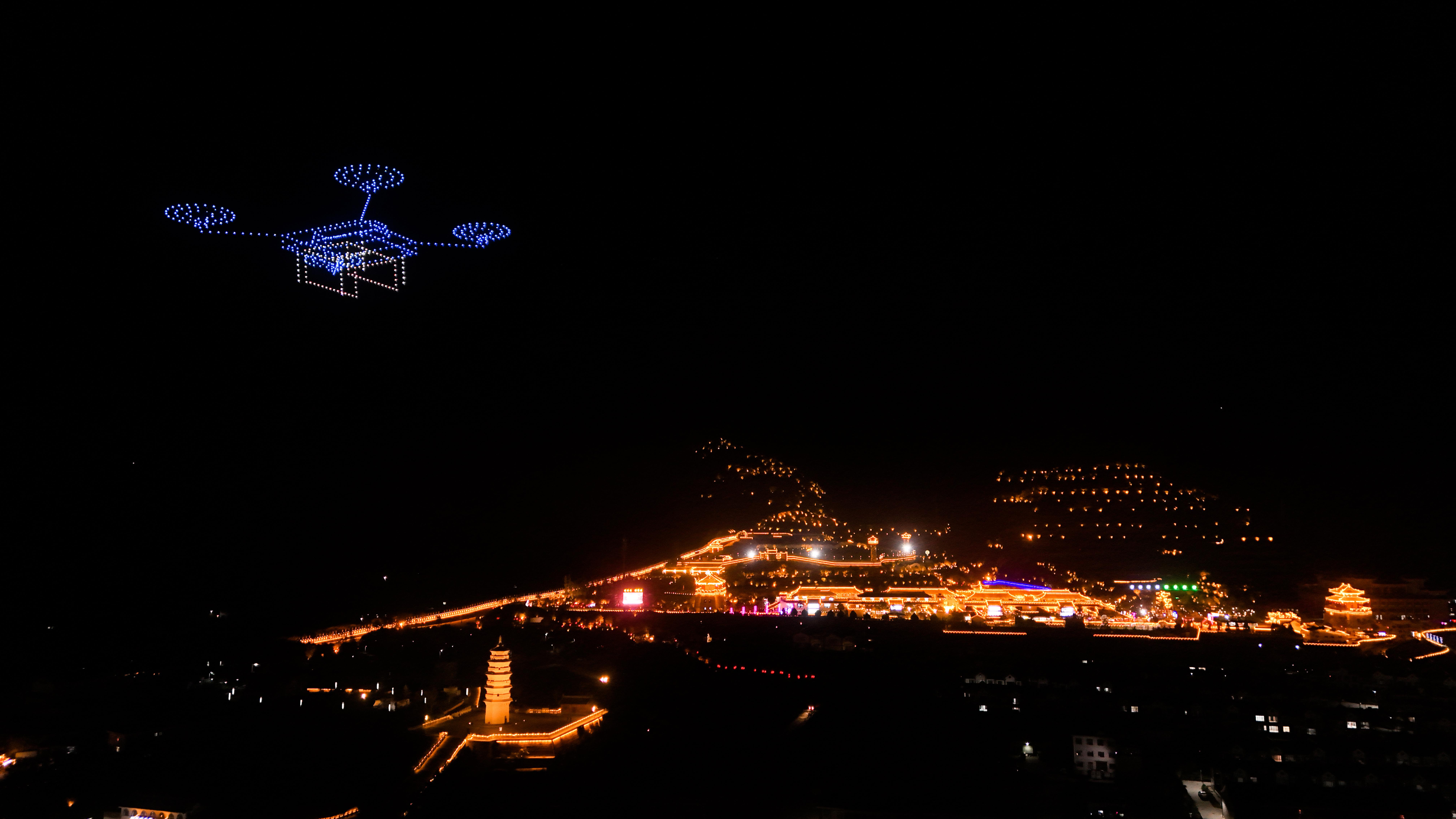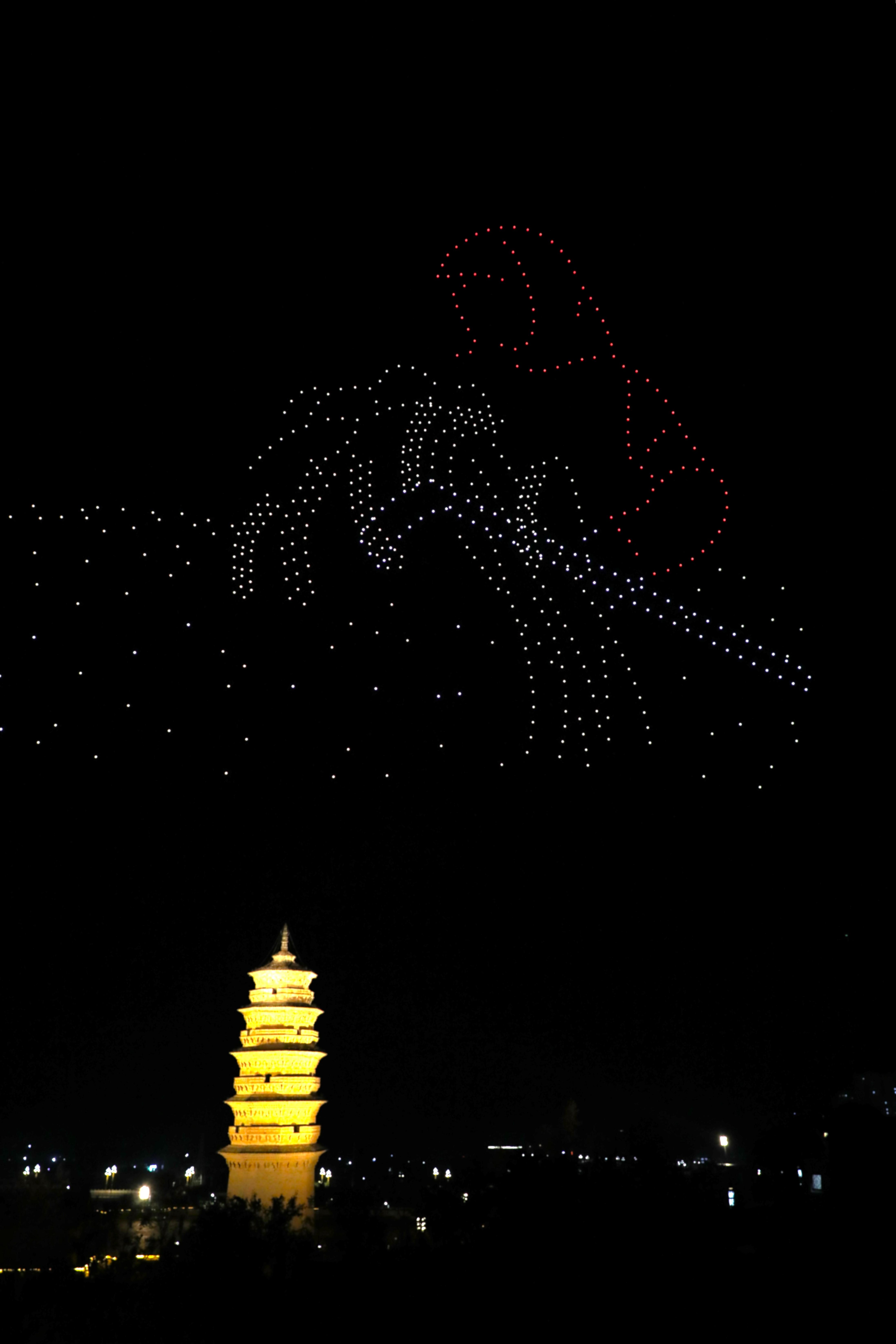9月23日晚8時(shí),環(huán)縣環(huán)州故城景福門廣場上空星光璀璨,一場由600架無人機(jī)聯(lián)袂演繹的“農(nóng)牧交響”視覺盛宴在此震撼上演,為當(dāng)?shù)厝罕姾陀慰瞳I(xiàn)上了一份別開生面的“豐收禮贊”。