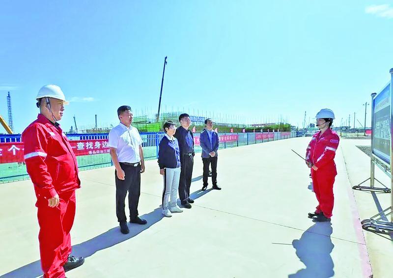 楊建華(左一)帶領(lǐng)會(huì)員赴西峰工業(yè)園區(qū)參觀考察。 通訊員 楊博 攝