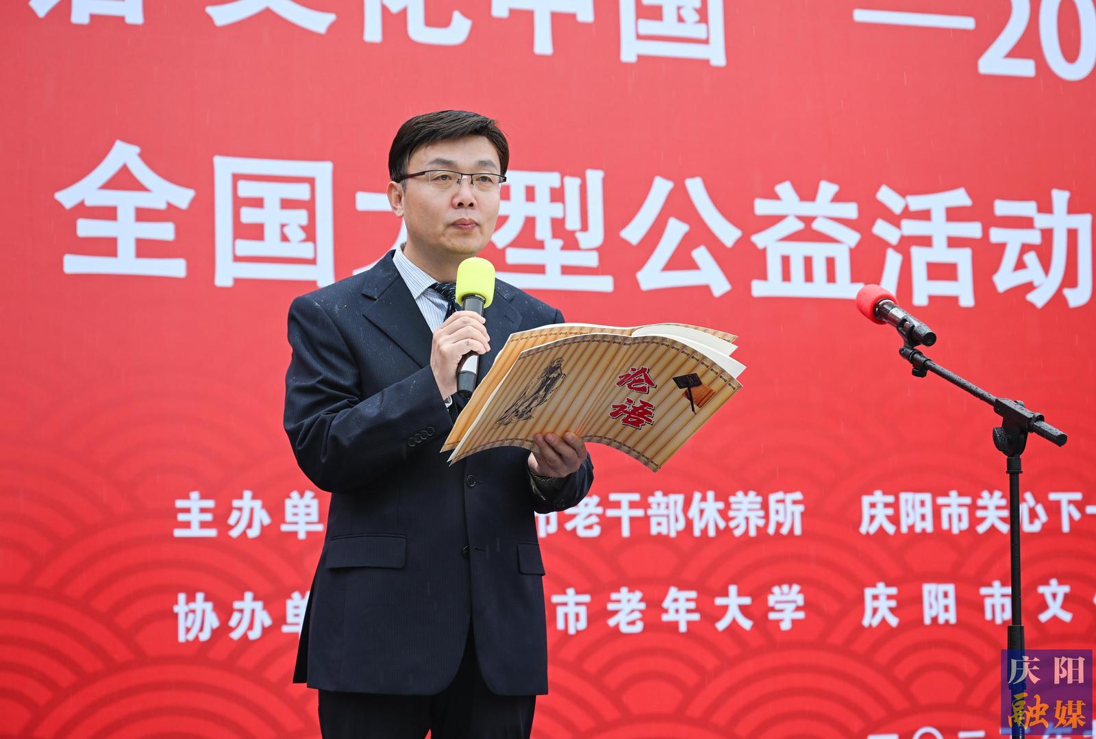 慶陽網(wǎng)訊(慶陽融媒記者 王志龍)9月28日,第九屆“相約論語·文化中國”——2025年度孔子誕辰日人人讀論語全國大型公益活動(dòng)(慶陽市分會(huì)場(chǎng))在市人民廣場(chǎng)舉行。本次活動(dòng)以“銀發(fā)青絲共誦經(jīng)典,文化薪火代代相傳”為主題,由慶陽市老干部休養(yǎng)所與慶陽市關(guān)心下一代工作委員會(huì)辦公室聯(lián)合主辦。
