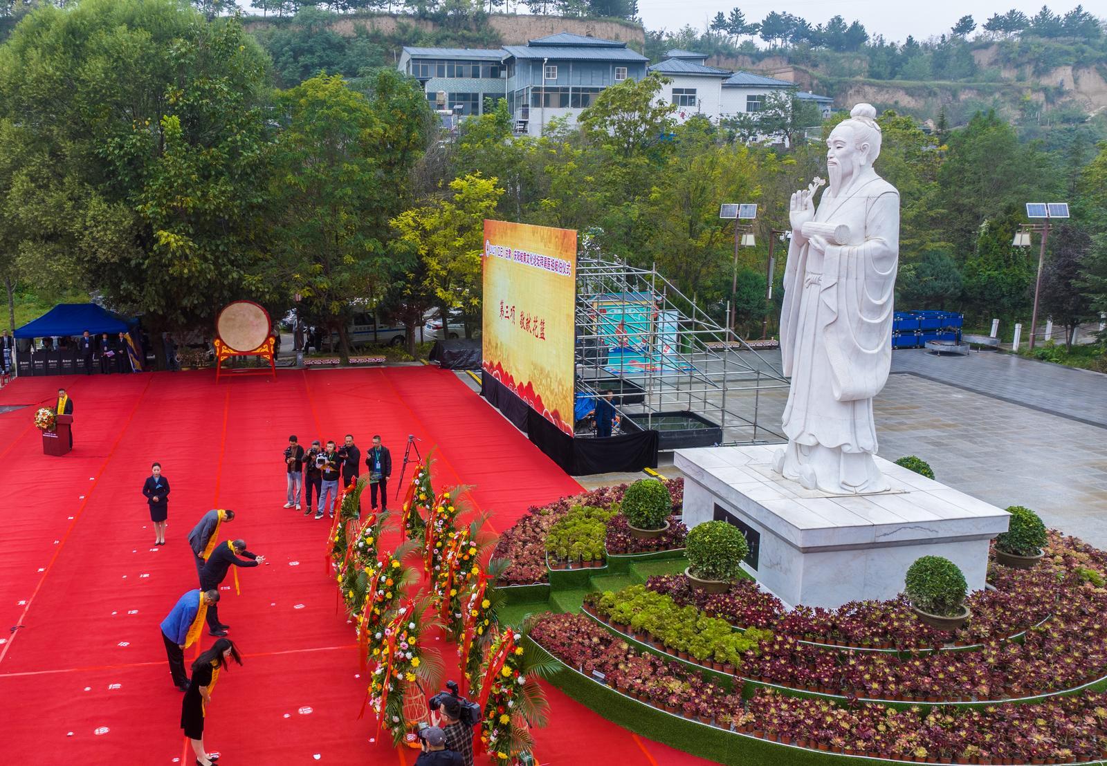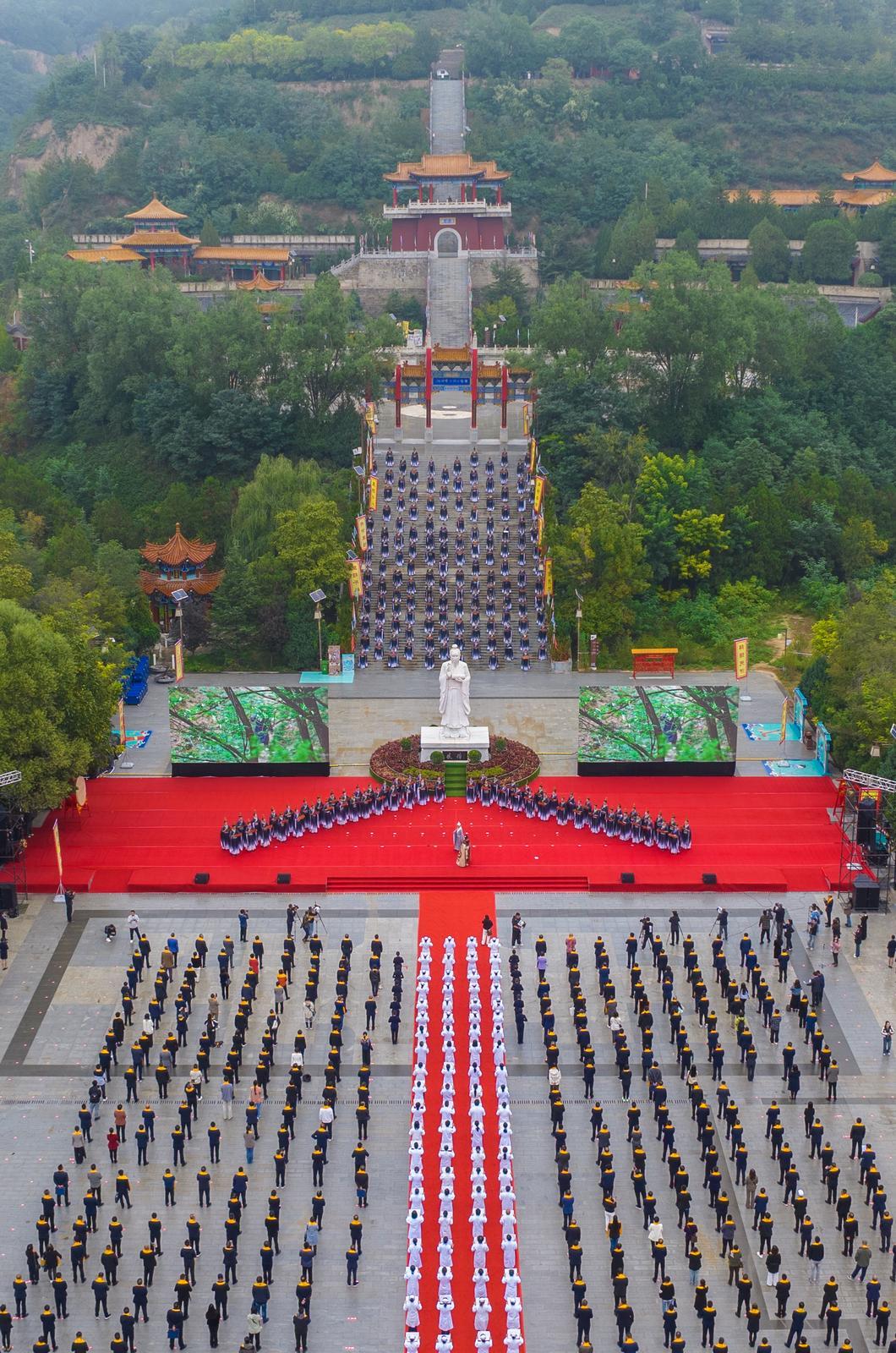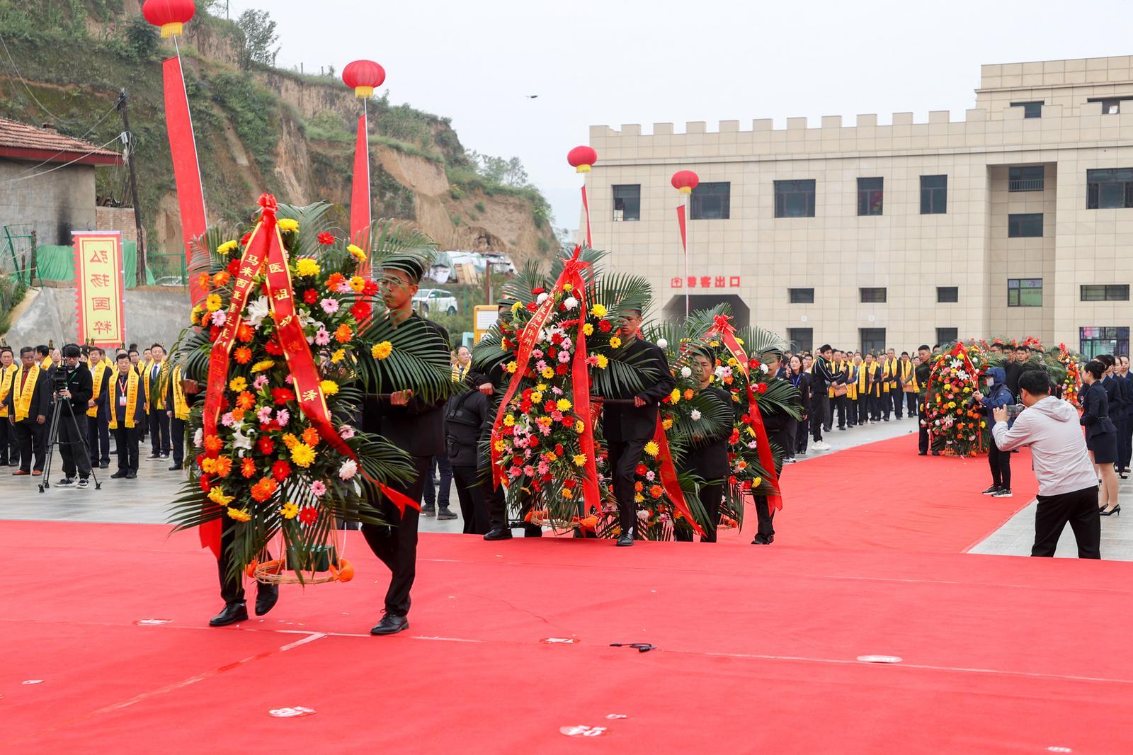東山巍巍,馬蓮湯湯。岐伯廣場松柏挺拔、旗幡列張,杏林翹楚、海外華裔、各界賢達咸集岐黃故里,謹以鮮花雅樂之儀,祭拜華夏中醫(yī)鼻祖岐伯。