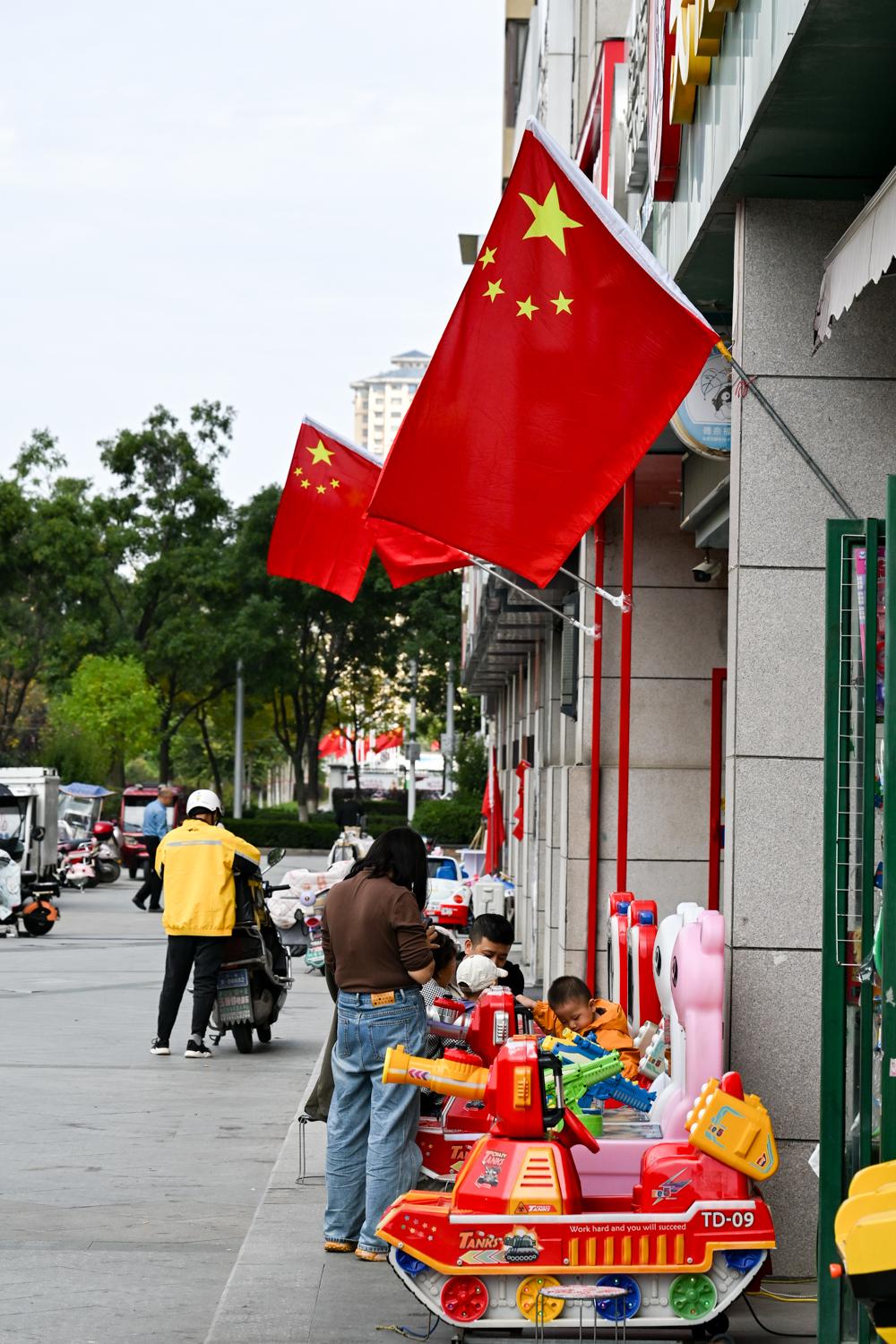 走在城區(qū)的主要街道,一面面嶄新的五星紅旗整齊地懸掛在路燈桿上。各大商場、臨街商鋪、居民小區(qū)也紛紛自發(fā)懸掛起國旗,為即將到來的節(jié)日增添了喜慶氛圍。