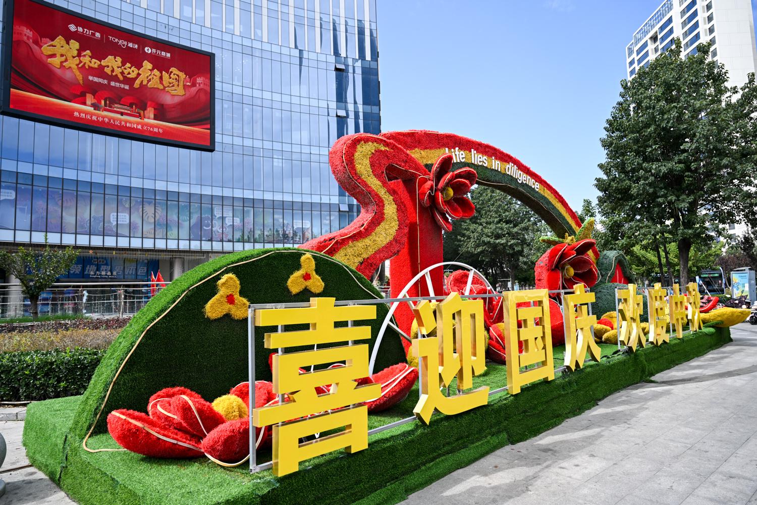 西峰區(qū)南大街布設(shè)節(jié)日主題景觀。