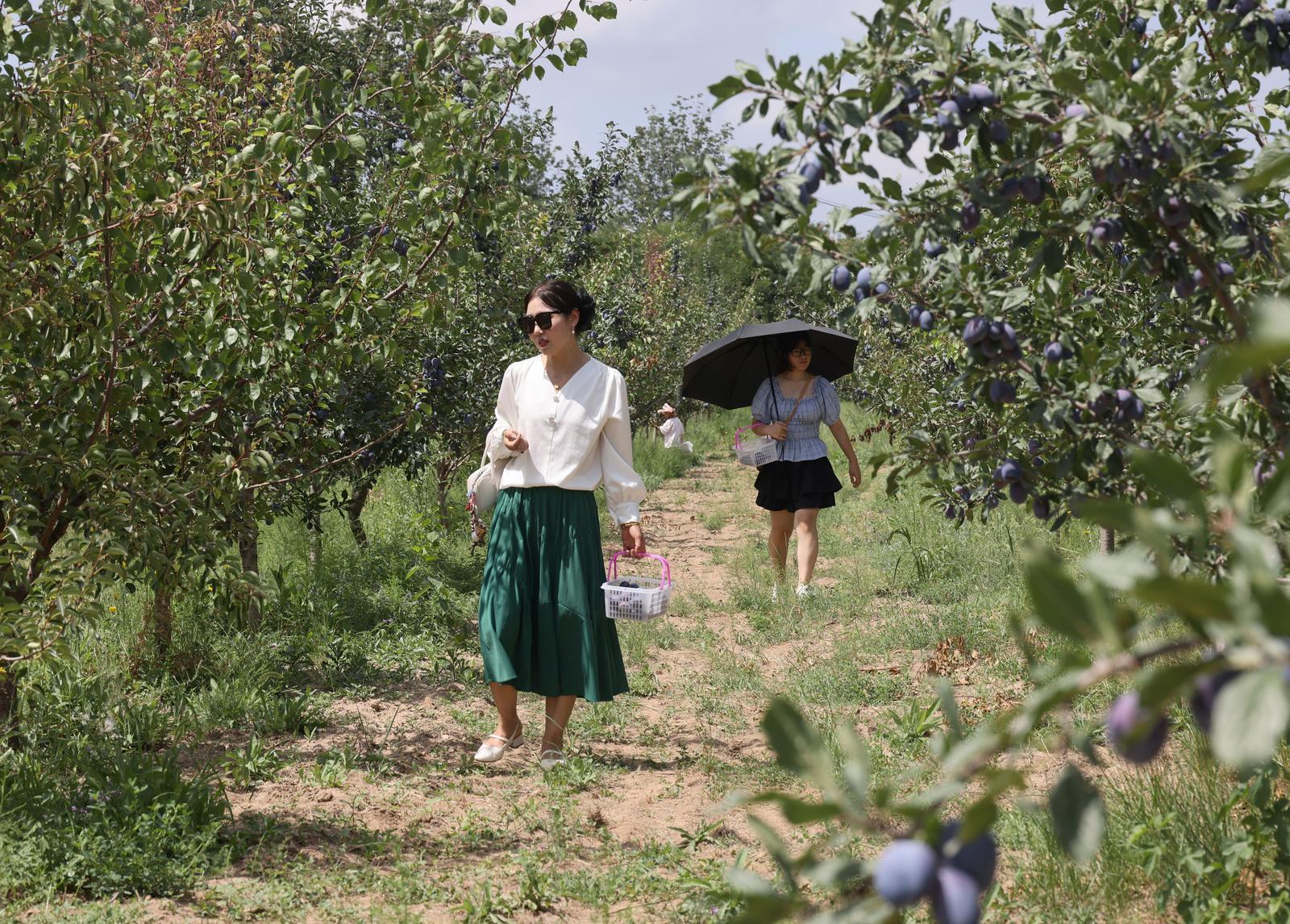 游客采摘西梅。