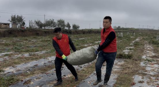 在慶城縣南莊鄉(xiāng),連綿的陰雨讓田野變得泥濘不堪。然而,在一片片掛滿果實的蘋果園與紅艷艷的辣椒田里,一群身著紅色馬甲的干部職工正爭分奪秒地忙碌著。他們手提肩扛、分工協(xié)作,在濕滑的田埂間來回穿梭,構成了一幅忙碌的搶收畫卷。