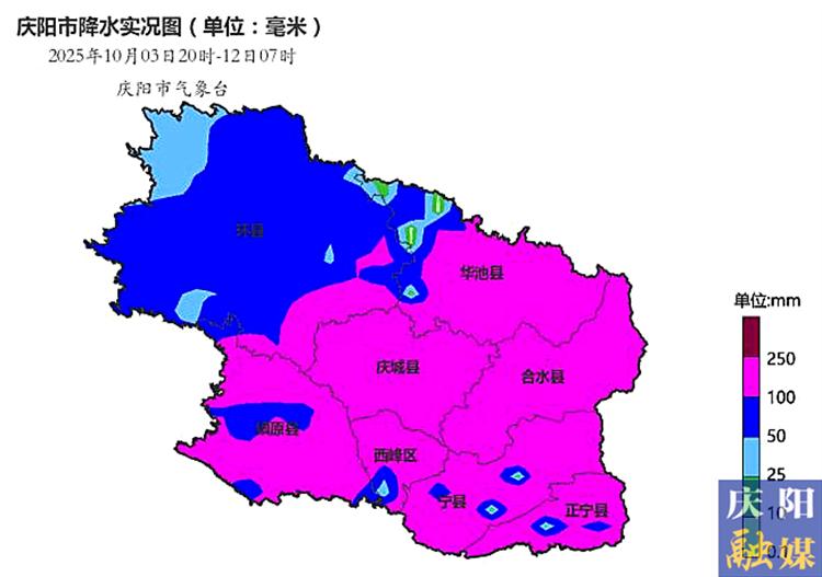 ▲慶陽市10月3日20時—12日07時降水量分布圖。