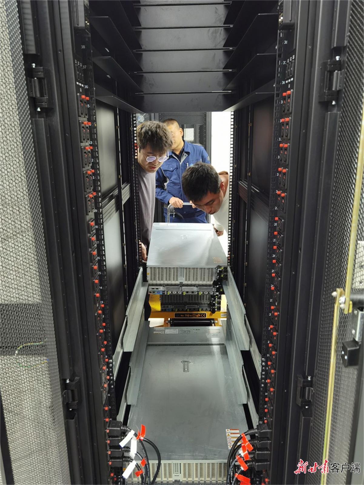 相關(guān)數(shù)字經(jīng)濟(jì)企業(yè)和中國移動(dòng)(甘肅·慶陽)數(shù)據(jù)中心工作人員裝載機(jī)柜。