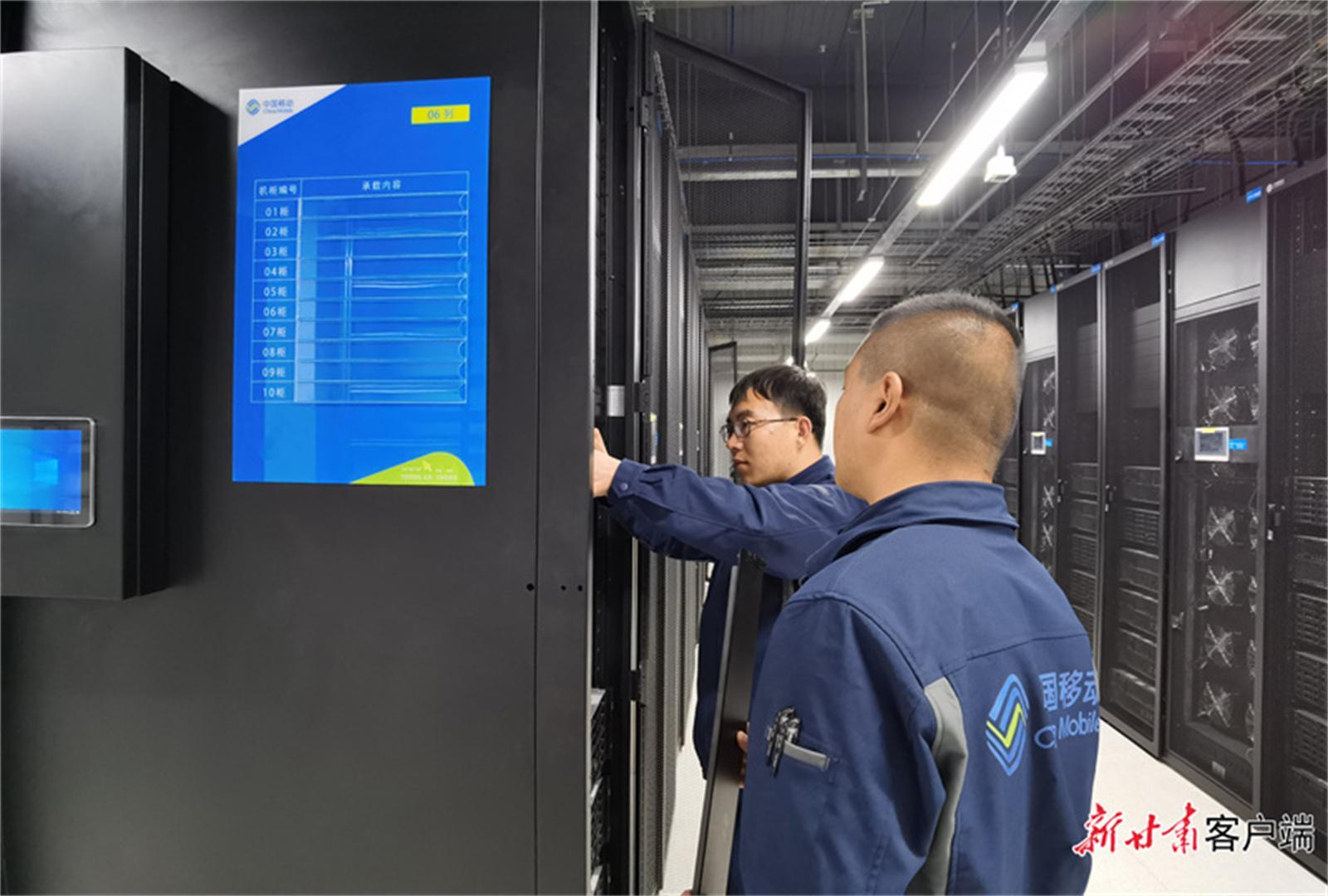 中國移動(dòng)(甘肅·慶陽)數(shù)據(jù)中心工作人員調(diào)試檢測(cè)設(shè)備。
