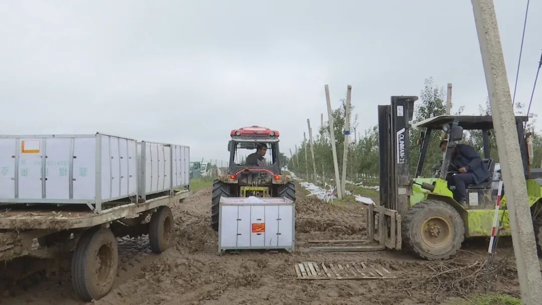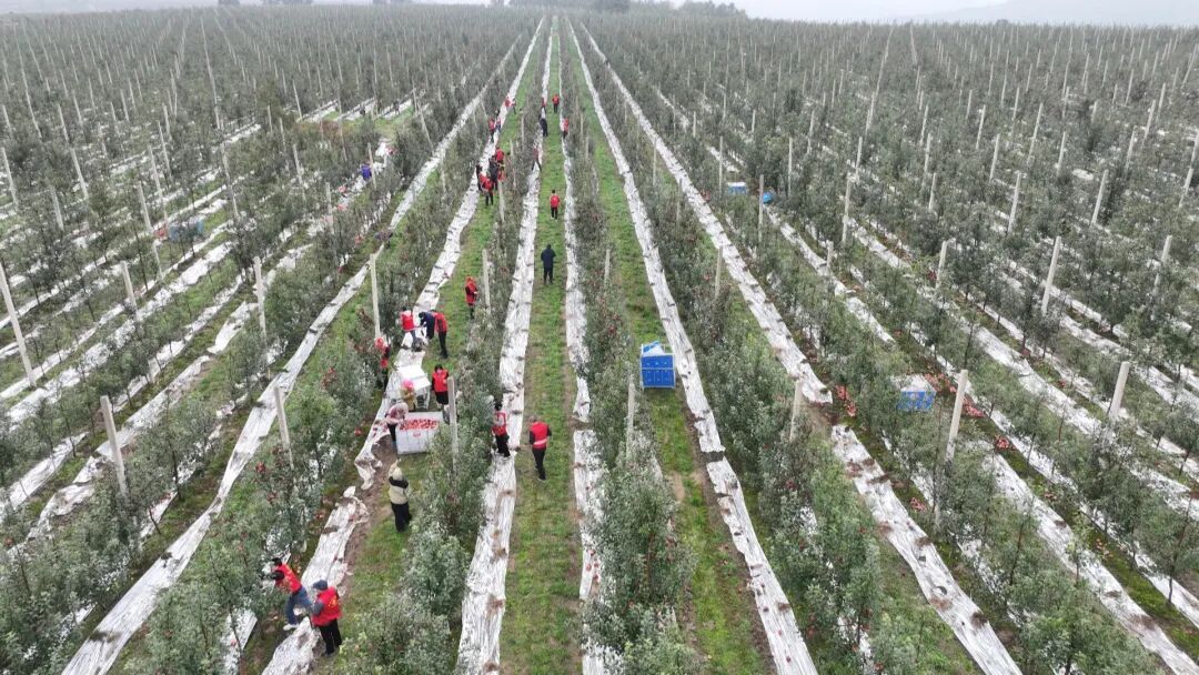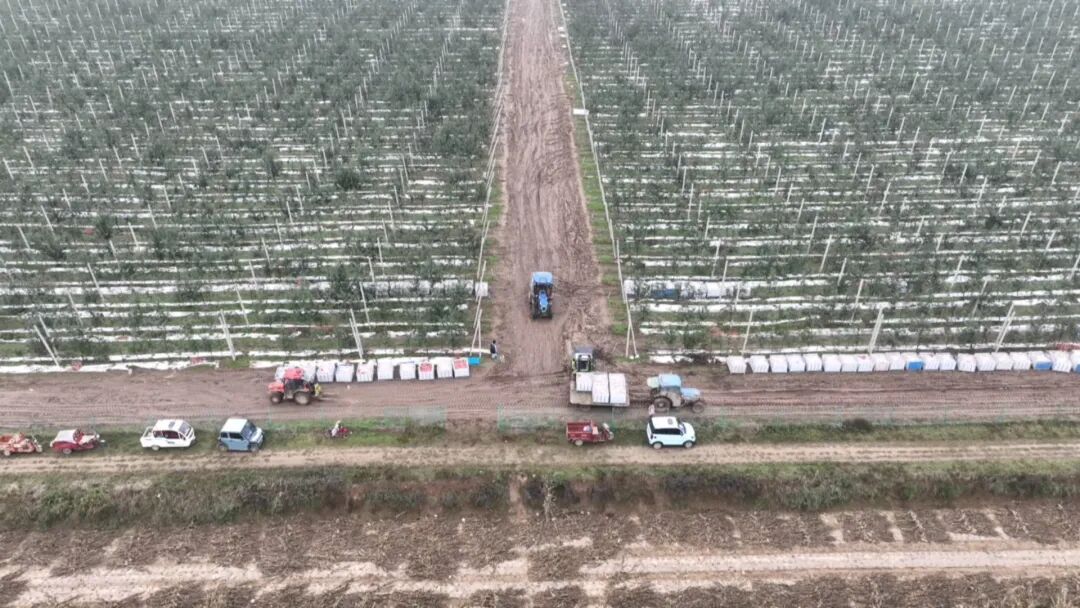 在平泉鎮(zhèn)五指平園蘋果基地,150多名干部群眾踩著泥濘、頂著涼意,正忙著采摘、分揀裝箱和搬運,爭分奪秒搶收蘋果,確保新鮮果實盡快入庫。