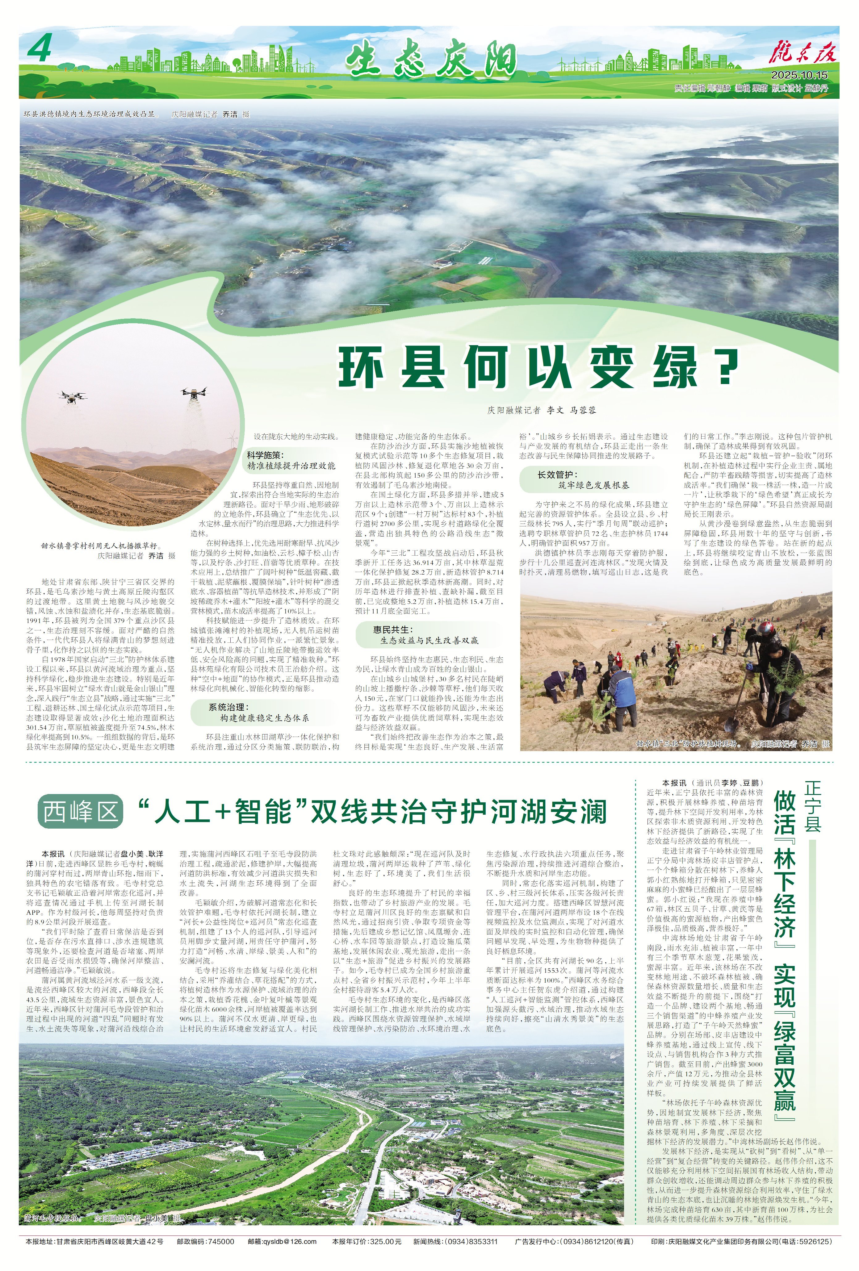在防沙治沙方面,環(huán)縣實施沙地植被恢復(fù)模式試驗示范等10多個生態(tài)修復(fù)項目,栽植防風(fēng)固沙林、修復(fù)退化草地各30余萬畝,在縣北部構(gòu)筑起150多公里的防沙治沙帶,有效遏制了毛烏素沙地南侵。