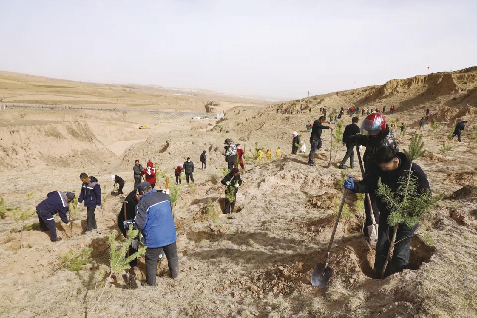 甜水鎮(zhèn)“三北”防護林植樹現(xiàn)場。 慶陽融媒記者 喬潔 攝