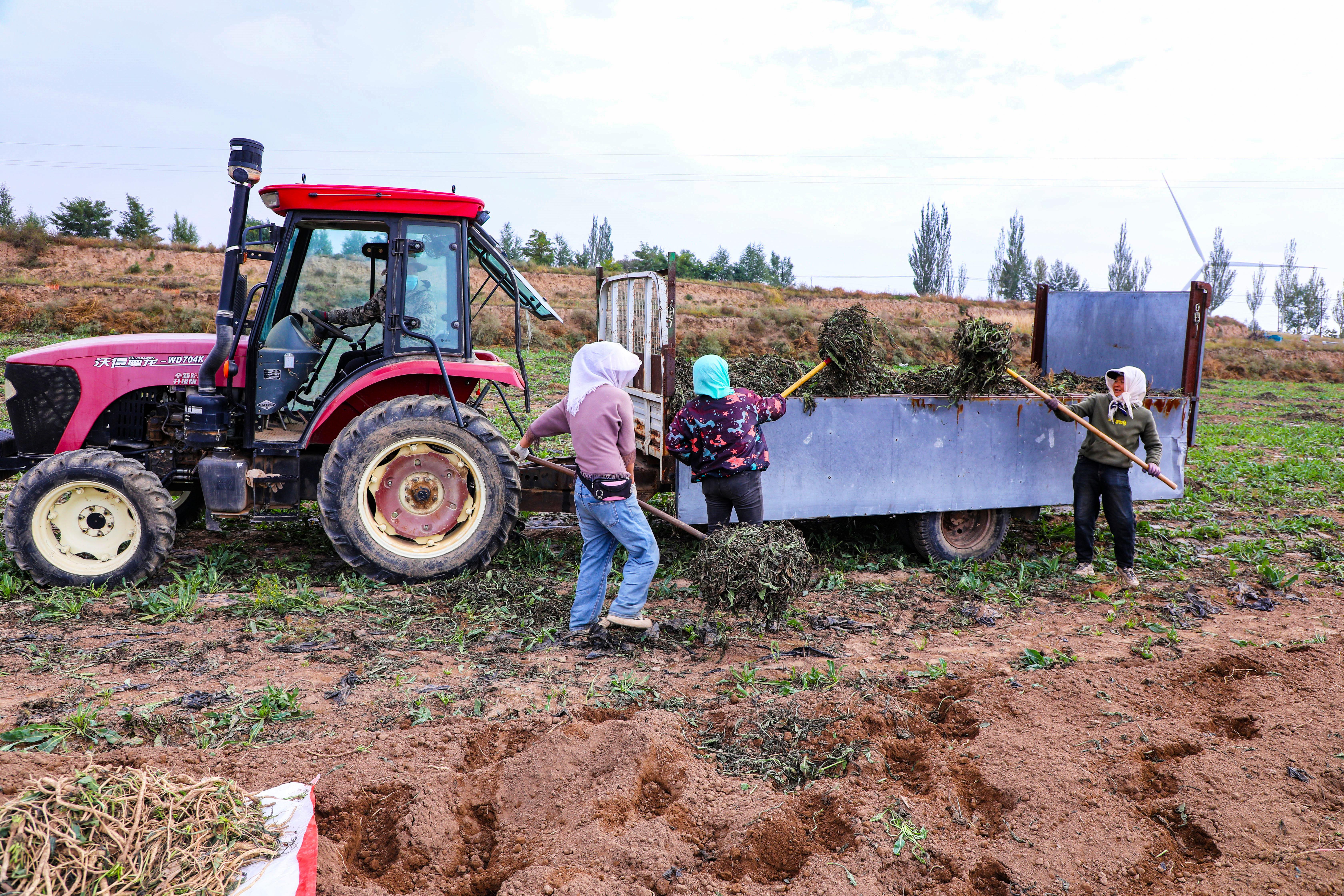 同樣忙碌的還有小南溝鄉(xiāng)。該鄉(xiāng)中藥材基地里,原先的翠綠已變成連片褐色,藥材全面進(jìn)入采收期。陳掌村馬路塬組村民余有明,每天開著自家采挖機(jī)穿梭田間:“這機(jī)子是3年前買的,一天能挖十幾畝地,每畝收費(fèi)200元。尤其是每年后半年,活兒根本干不完。”
